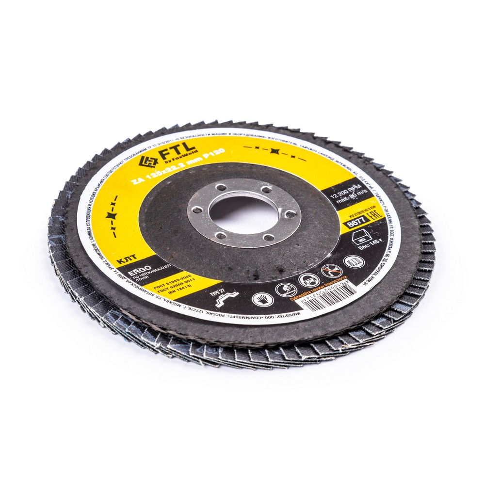 Круг лепестковый для шлифования по нержавеющей стали FTL Ergo 27 цирконий 125 х 22,2 мм P120