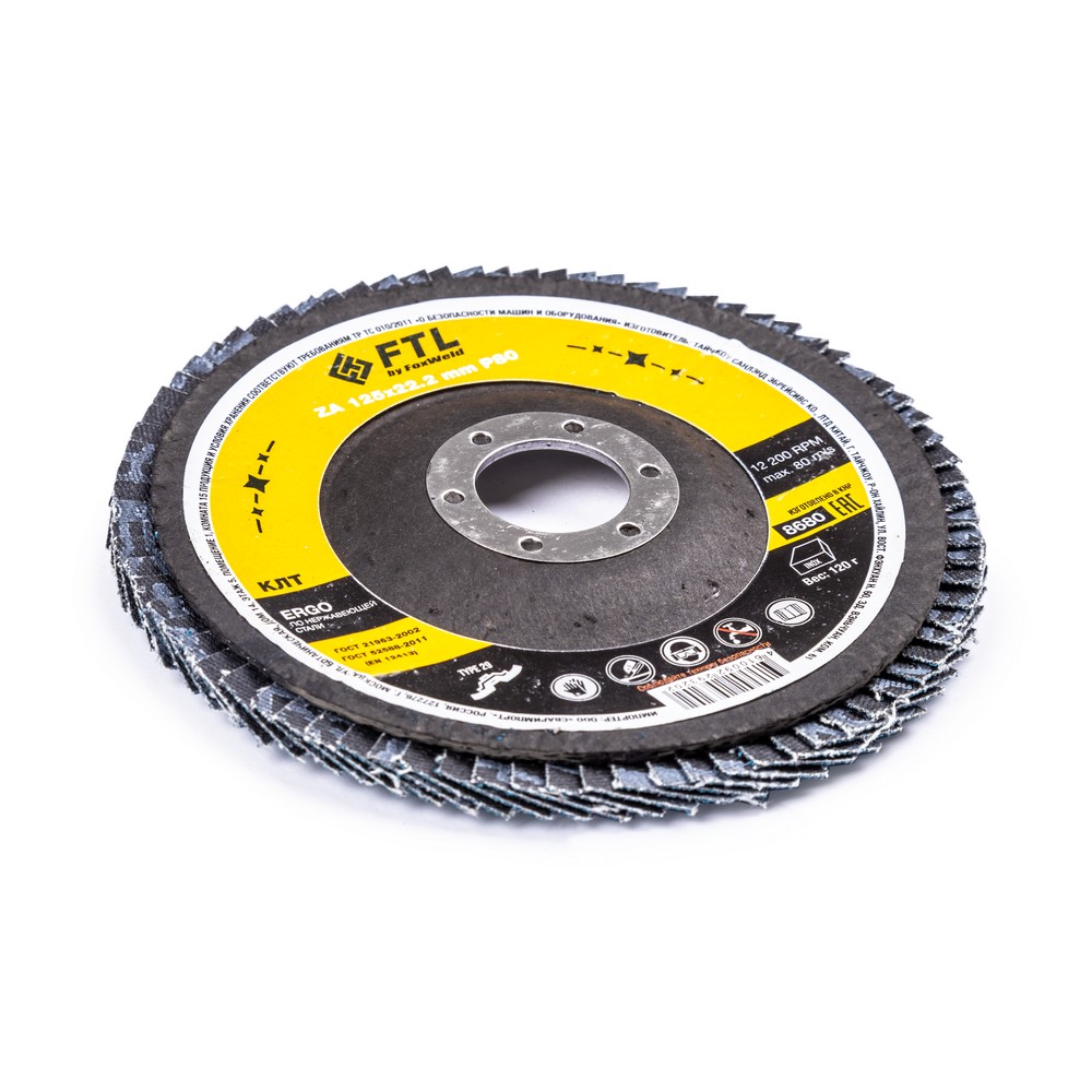Круг лепестковый для шлифования по нержавеющей стали FTL Ergo 29 цирконий 125 х 22,2 мм P80