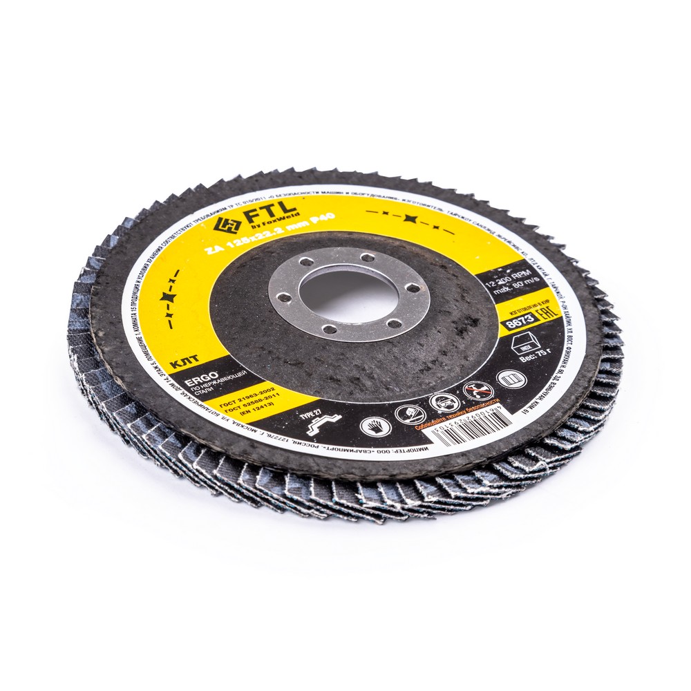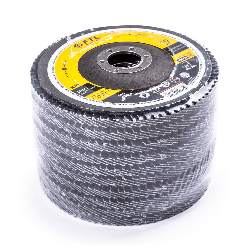 Круг лепестковый для шлифования по нержавеющей стали FTL Ergo цирконий 27 125 х 22,2 мм P40