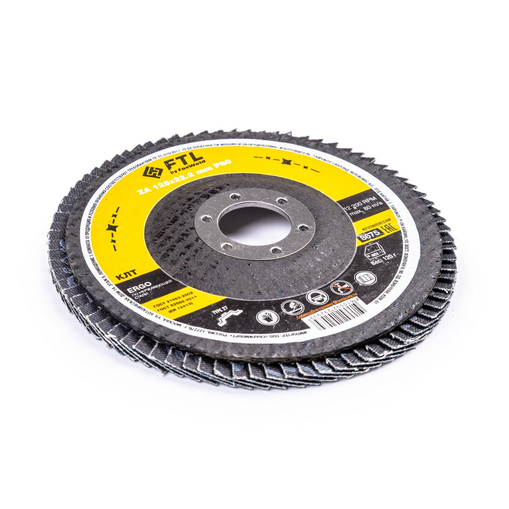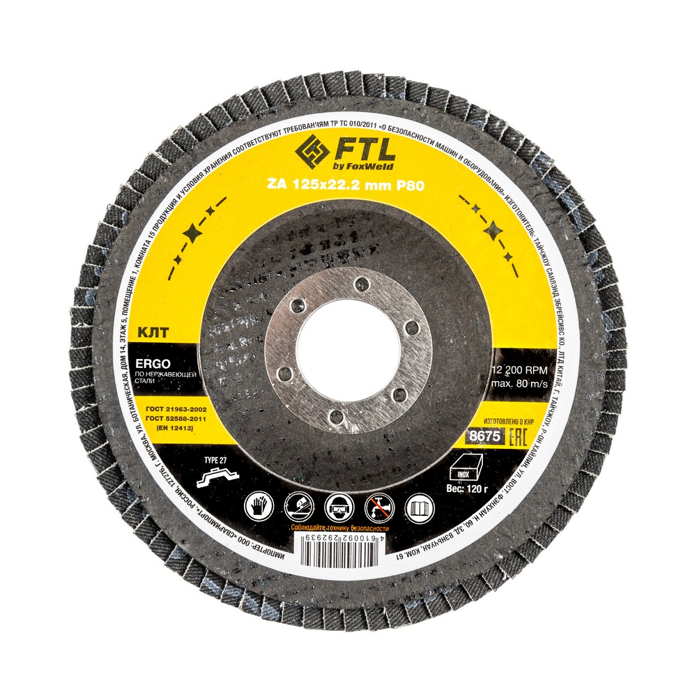Круг лепестковый для шлифования по нержавеющей стали FTL Ergo цирконий 27 125 х 22,2 мм P80