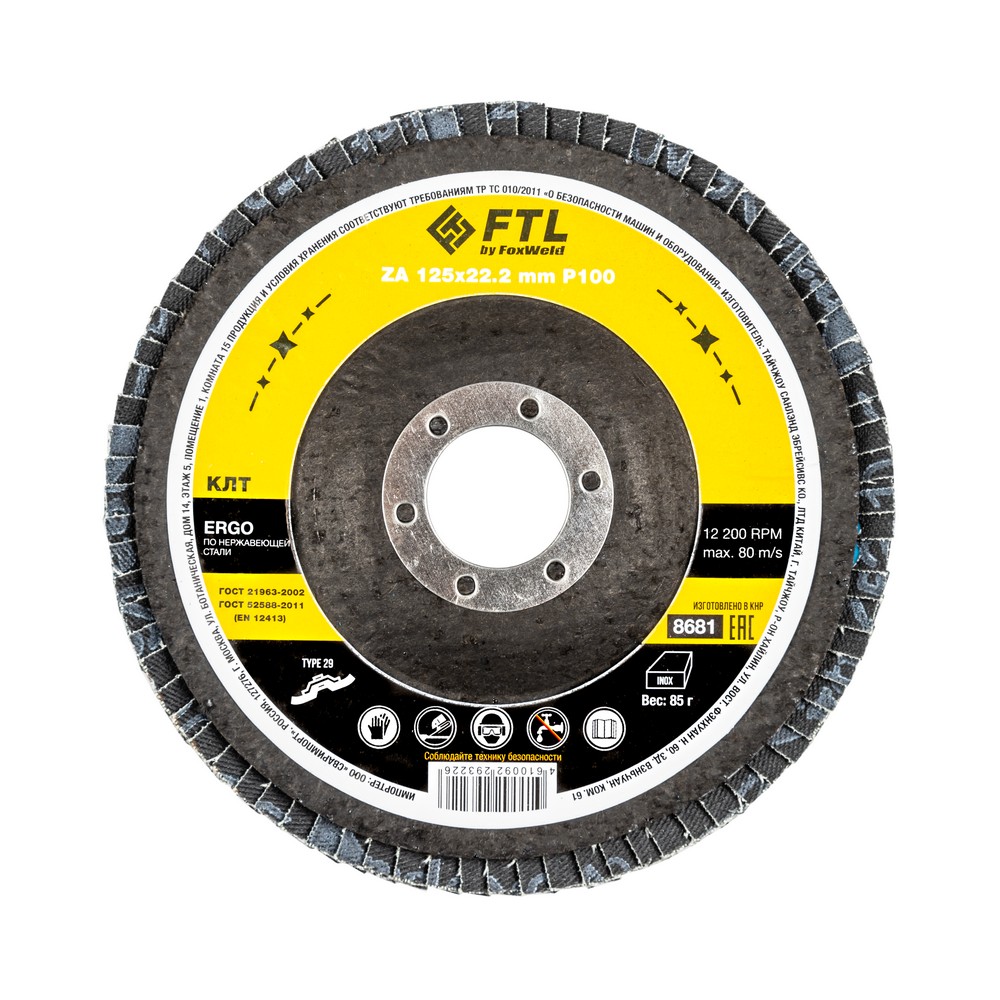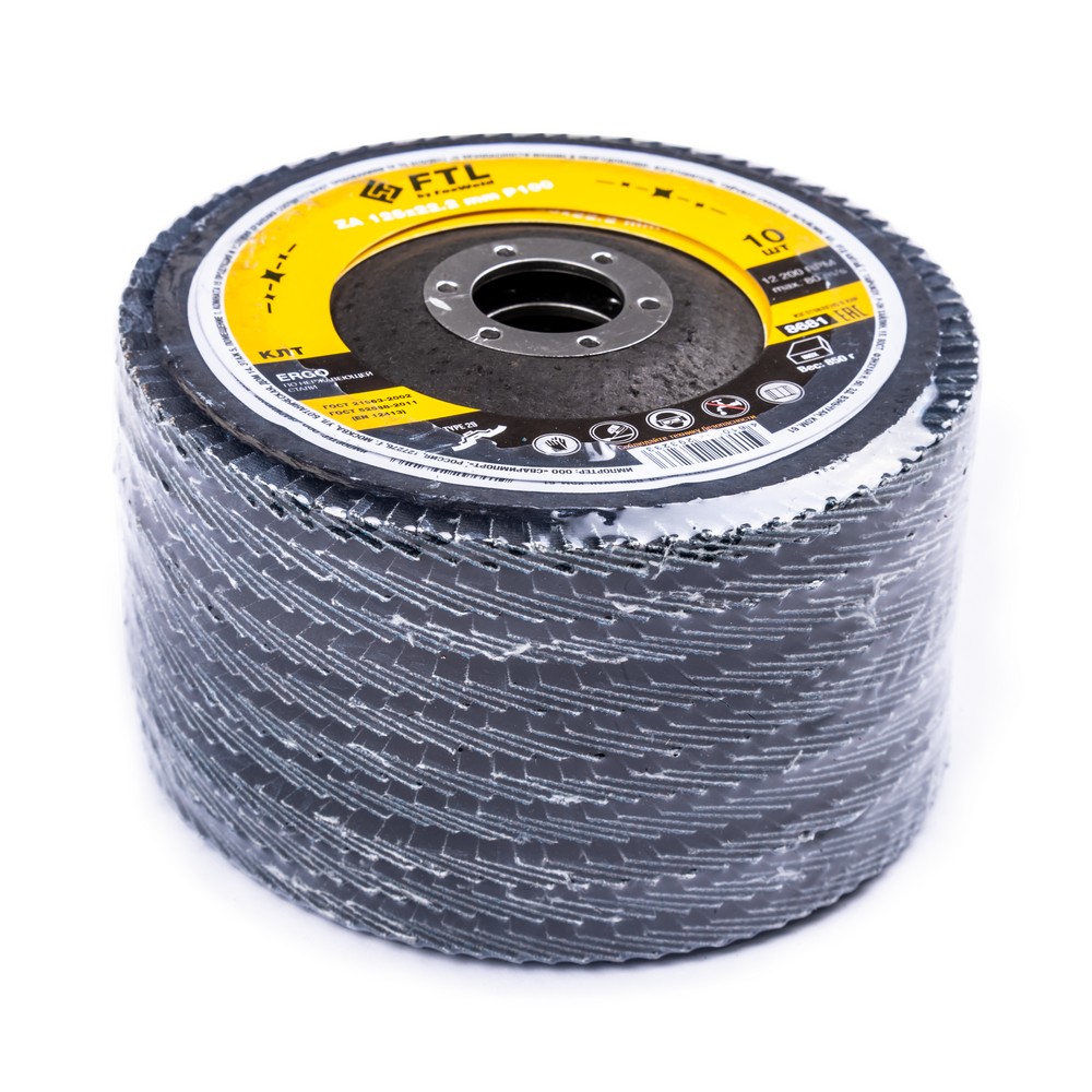 Круг лепестковый для шлифования по нержавеющей стали FTL Ergo цирконий 29 125 х 22,2 мм P100