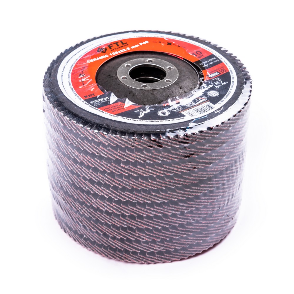 Круг лепестковый с керамическим абразивом для шлифования по нержавеющей стали FTL Everest 29 125 х 22,2 мм P40