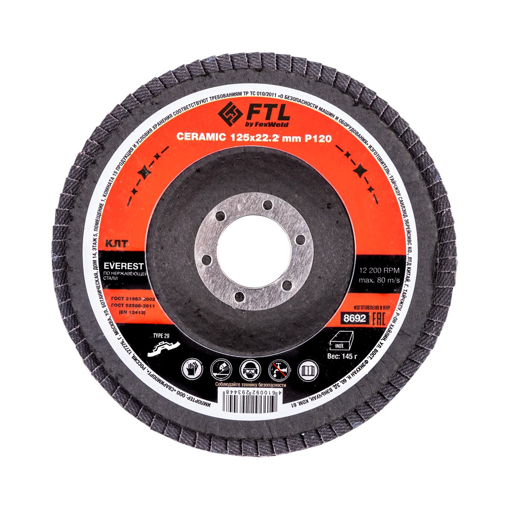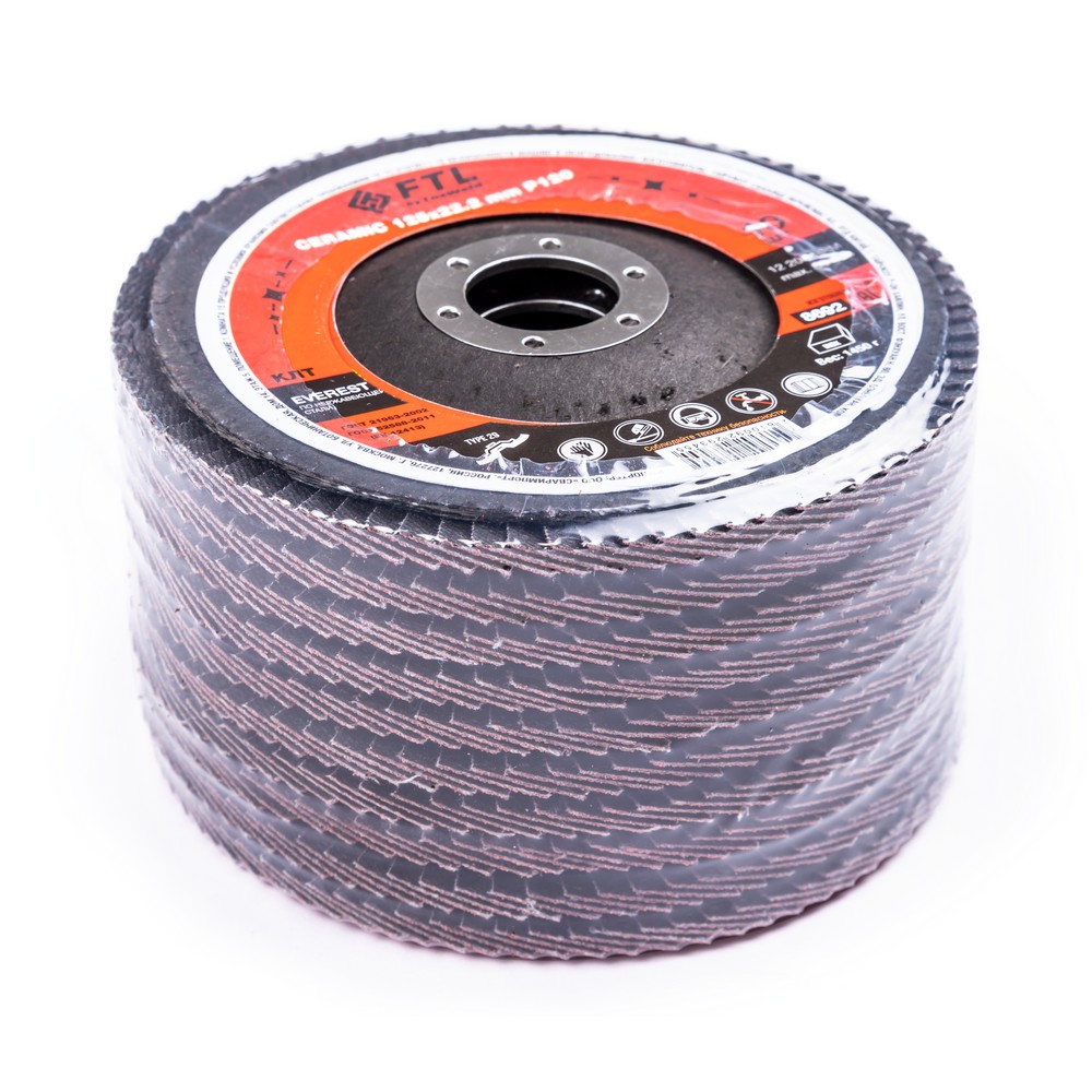 Круг лепестковый с керамическим абразивом для шлифования по нержавеющей стали FTL Everest 29 125 х 22,2 мм P120