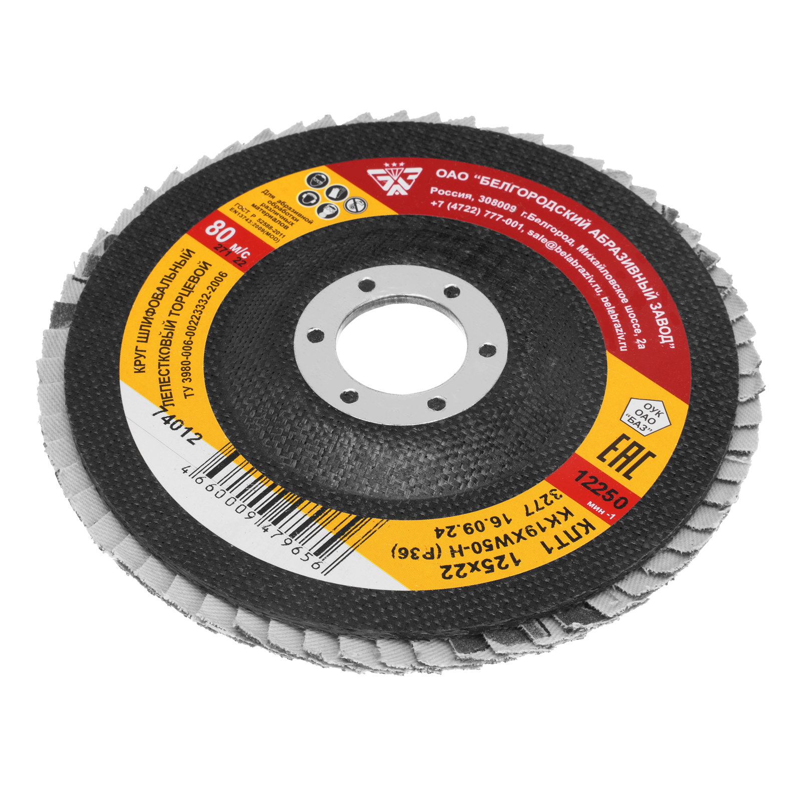 Круг лепестковый торцевой КЛТ-1, зернистость P 36(50Н) 125 х 22.2 мм, "БАЗ"