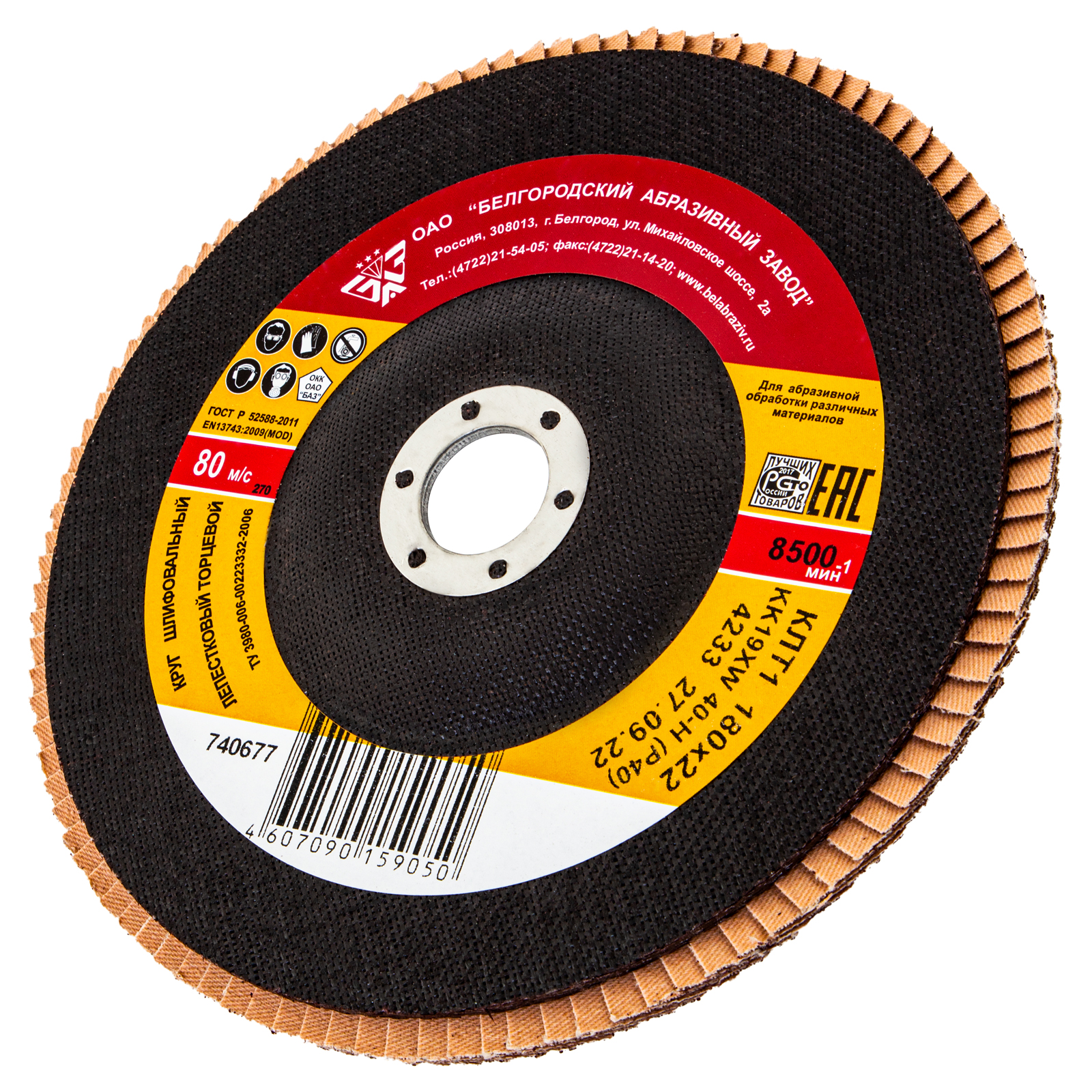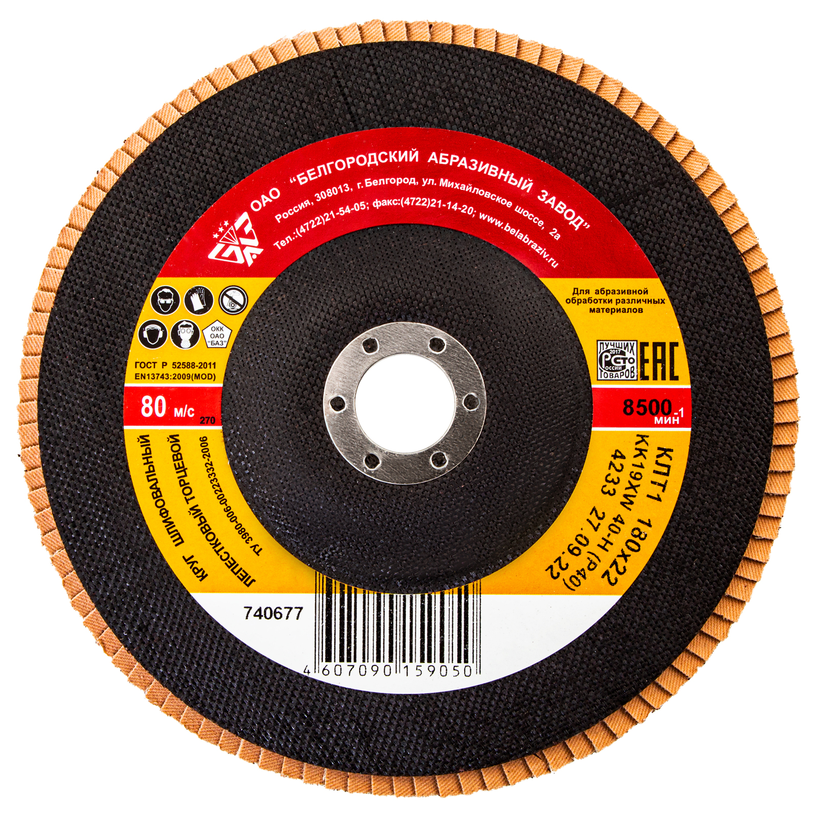 Круг лепестковый торцевой КЛТ-1, зернистость Р 40, 180 х 22.2 мм