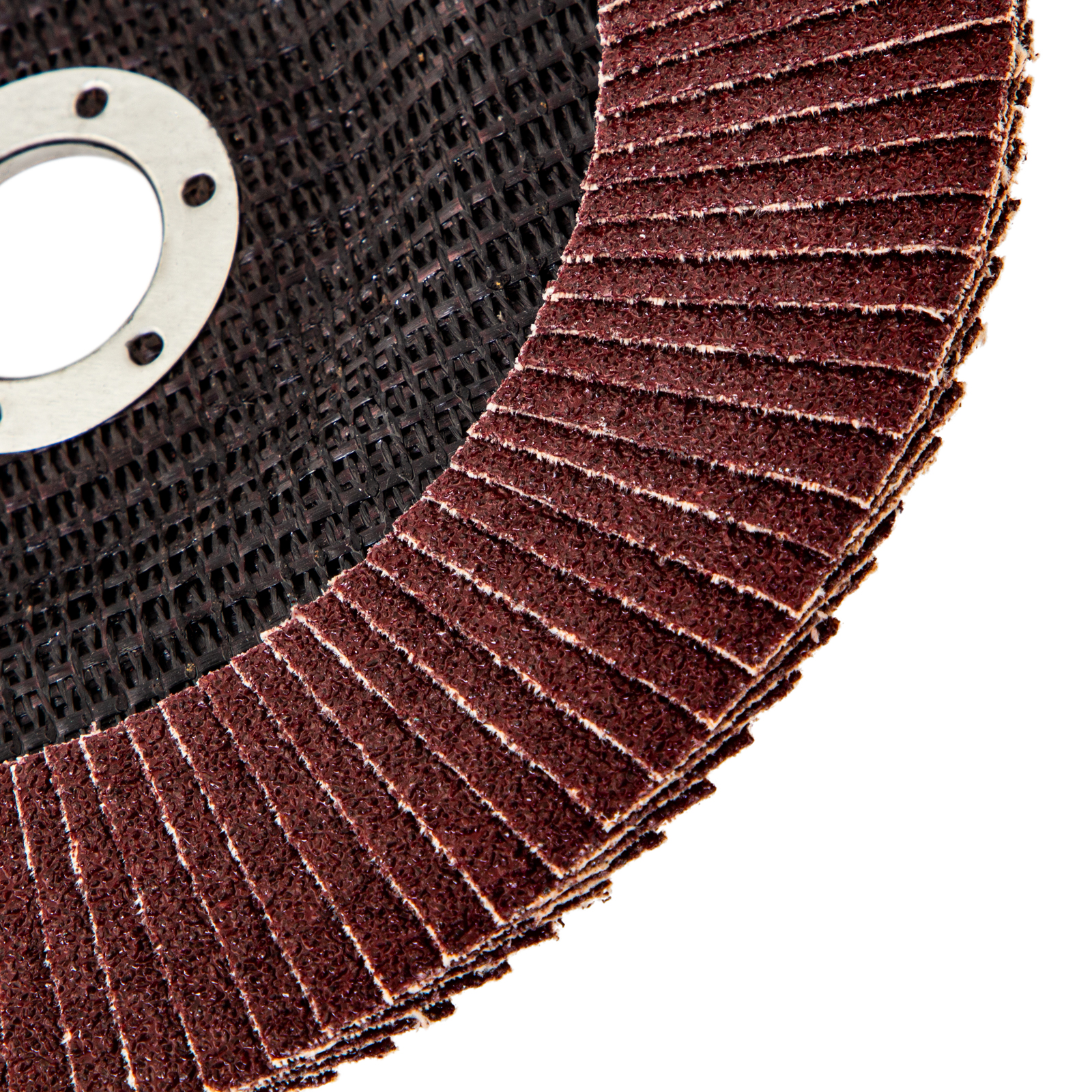 Круг лепестковый торцевой КЛТ-1 740677 зернистостью Р40 и диаметром 180 мм устанавливается на фланец УШМ с диаметром посадочного отверстия 22,2 мм. Используется для грубой (черновой) обработки, торцевого и плоского шлифования древесины, металла, пластика. С помощью круга можно зачистить сварные швы, острые углы после резки, удалить заусенцы, толстый слой ржавчины и краски, снять фаски и т.д.