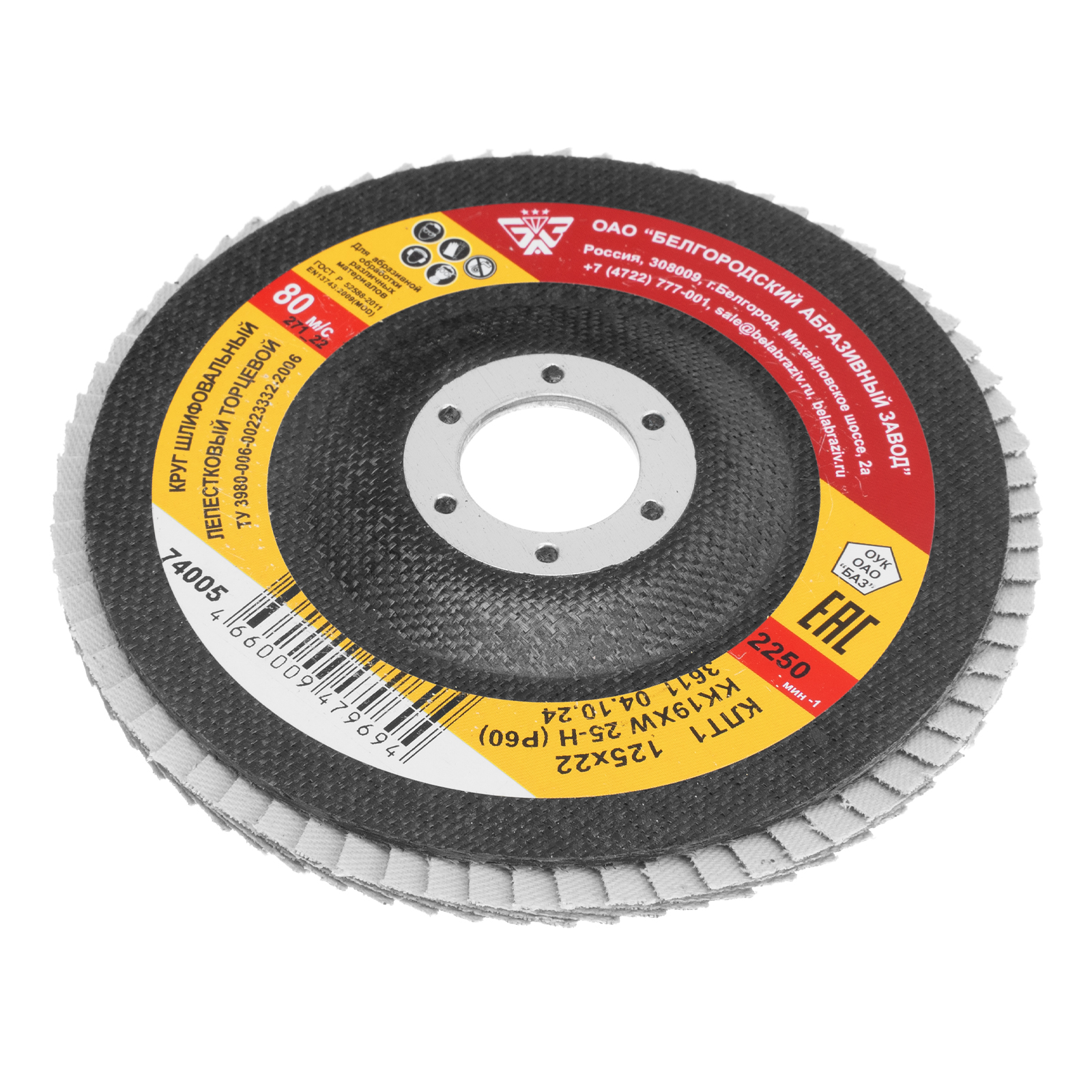 Круг лепестковый торцевой КЛТ-1, зернистость Р 60(25Н) 125 х 22.2 мм, "БАЗ"