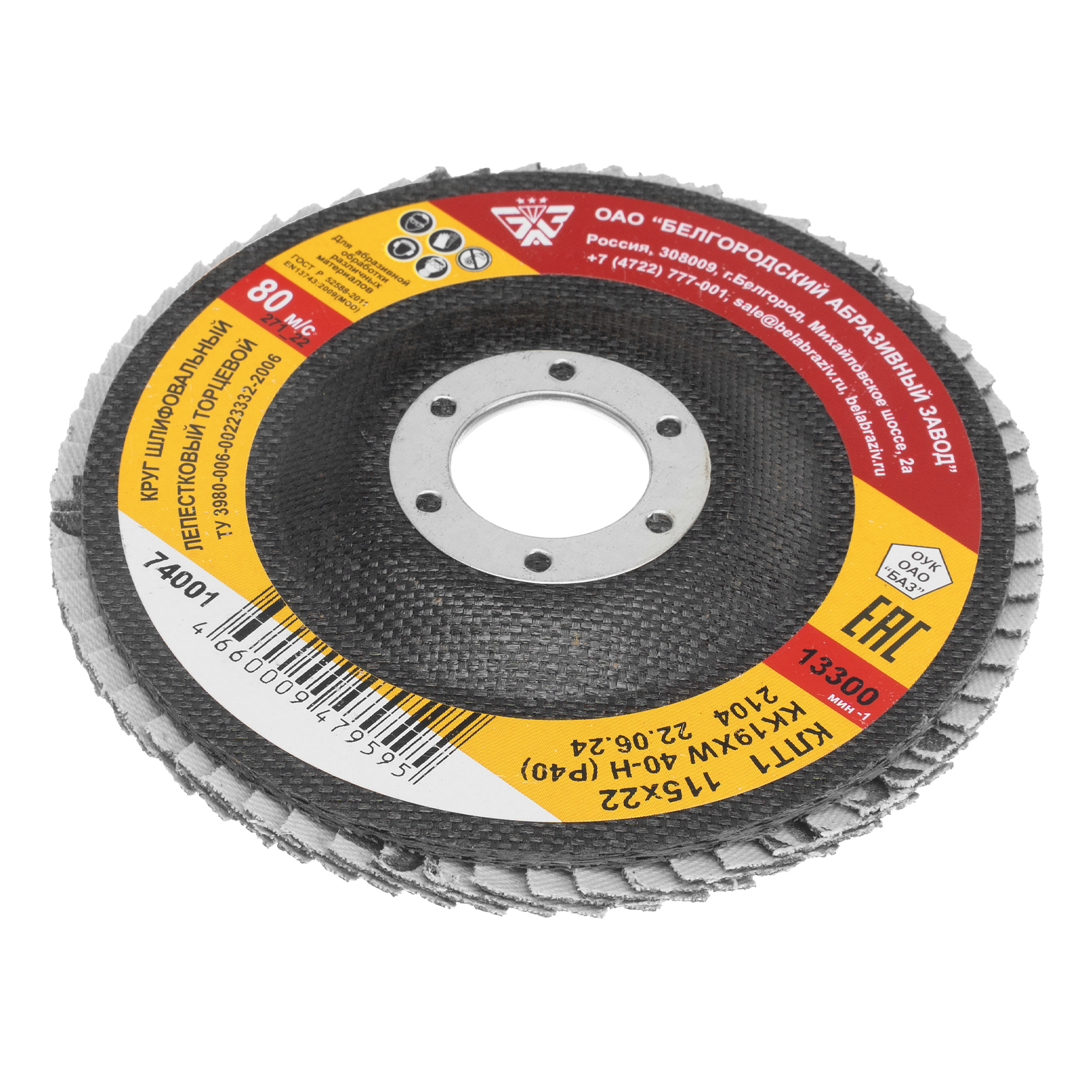 Круг лепестковый торцевой КЛТ-1, зернистость Р40(40Н) 115 х 22.2 мм, "БАЗ"