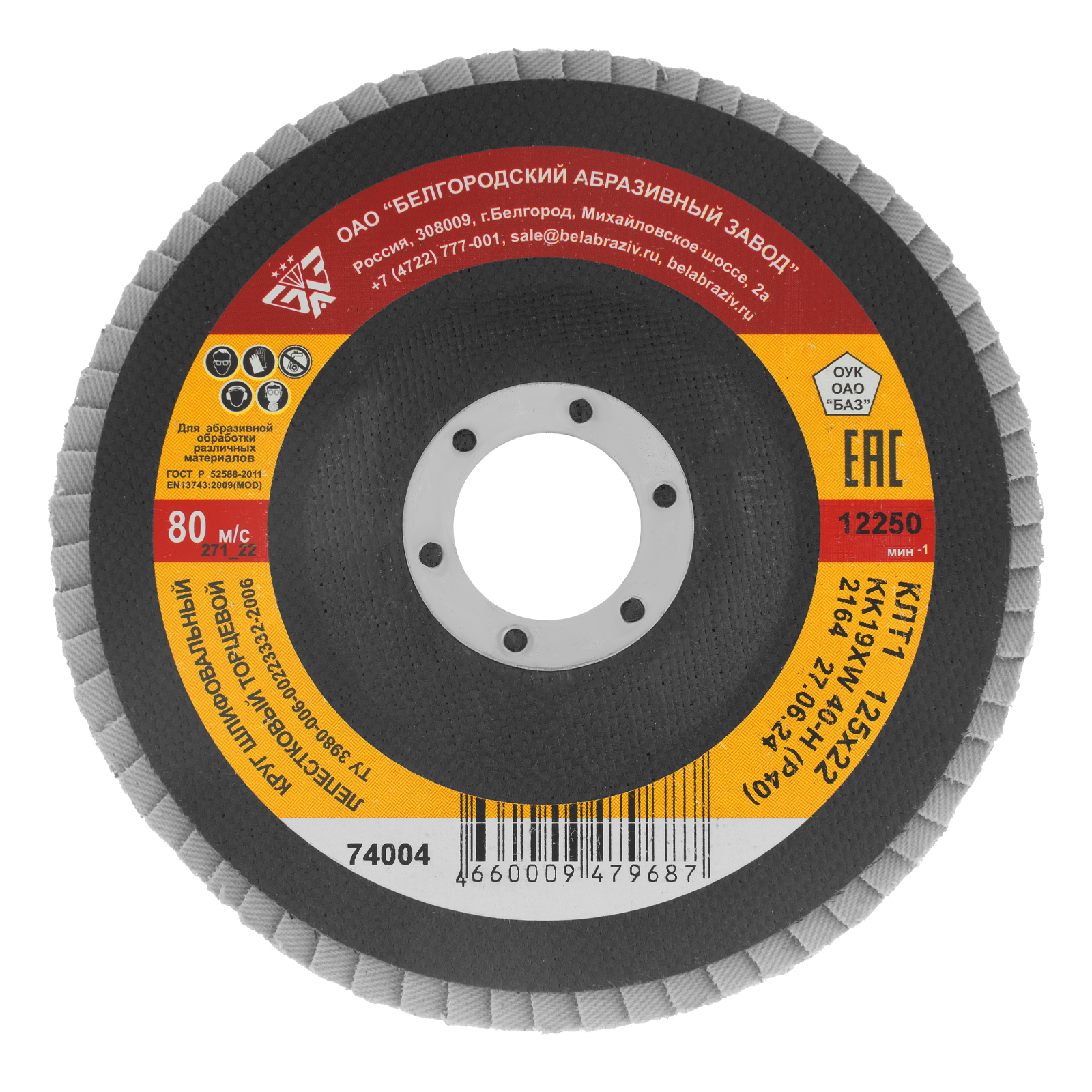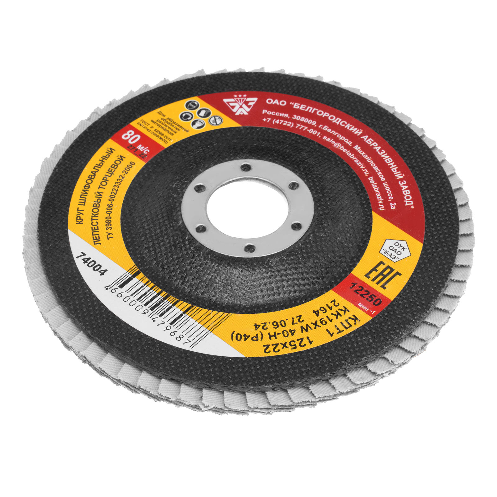 Круг лепестковый торцевой КЛТ-1, зернистость Р40(40Н) 125 х 22.2 мм, "БАЗ"