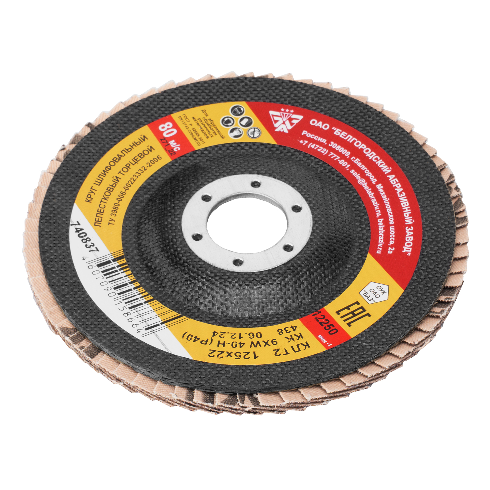 Круг лепестковый торцевой КЛТ-2, зернистость Р 40, 125 х 22.2 мм