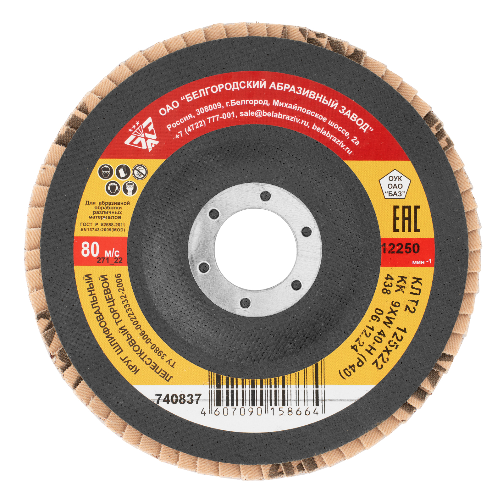 Круг лепестковый торцевой БАЗ КЛТ-2 740837 зернистостью Р40, 125 х 22,2 мм, устанавливается в качестве оснастки на фланец УШМ с диаметром посадочного отверстия 22,2 мм. Он используется для черновой обработки, торцевого и плоского шлифования древесины, металла, пластика. С помощью круга можно зачистить сварные швы, острые углы после резки, удалить толстый слой ржавчины и краски, снять фаски и т.д.