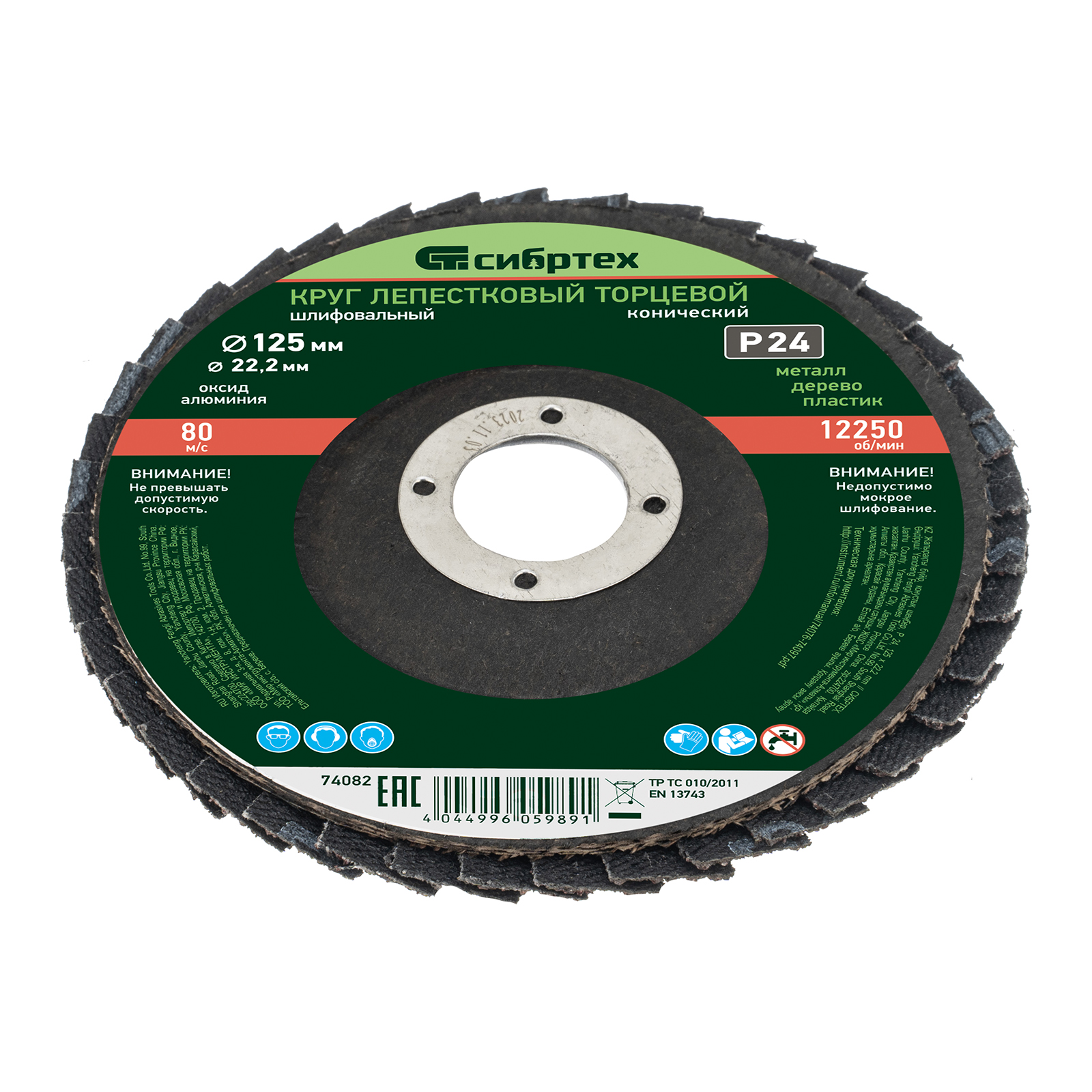 Круг лепестковый торцевой, конический, Р 24, 125 х 22.2 мм Сибртех