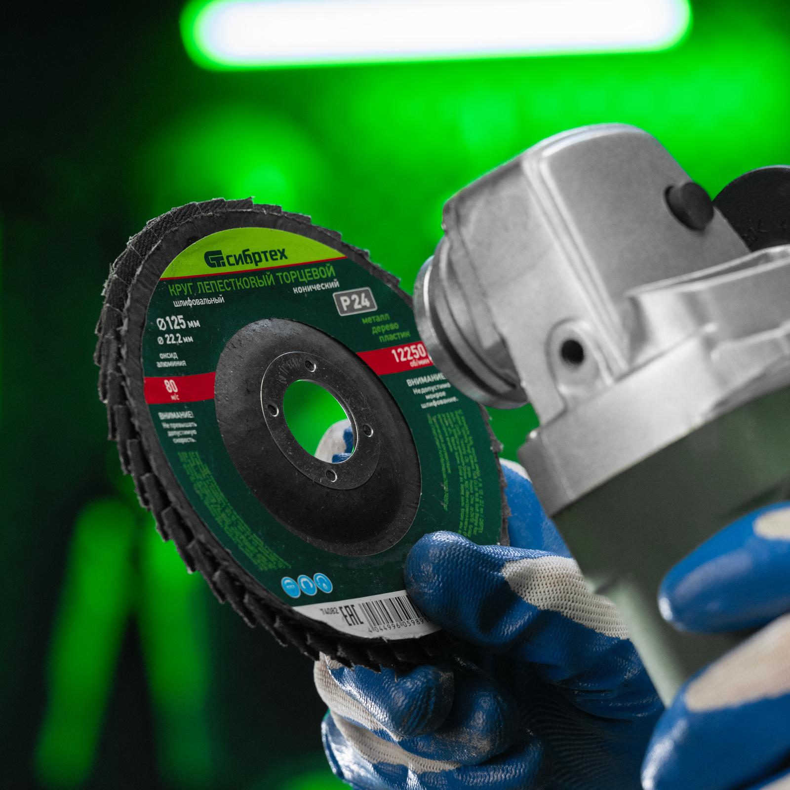 Круг лепестковый торцевой конический Сибртех 74082 с крупнозернистым абразивом Р24, 125 х 22,2 мм, устанавливается на углошлифовальные машины с соответствующим посадочным диаметром. Он используется для грубой (черновой) обработки, торцевого и плоского шлифования древесины, металла, пластика. С помощью него можно выполнить первичную зачистку сварных швов, убрать грубые дефекты, толстый слой ржавчины и краски и т.д.
