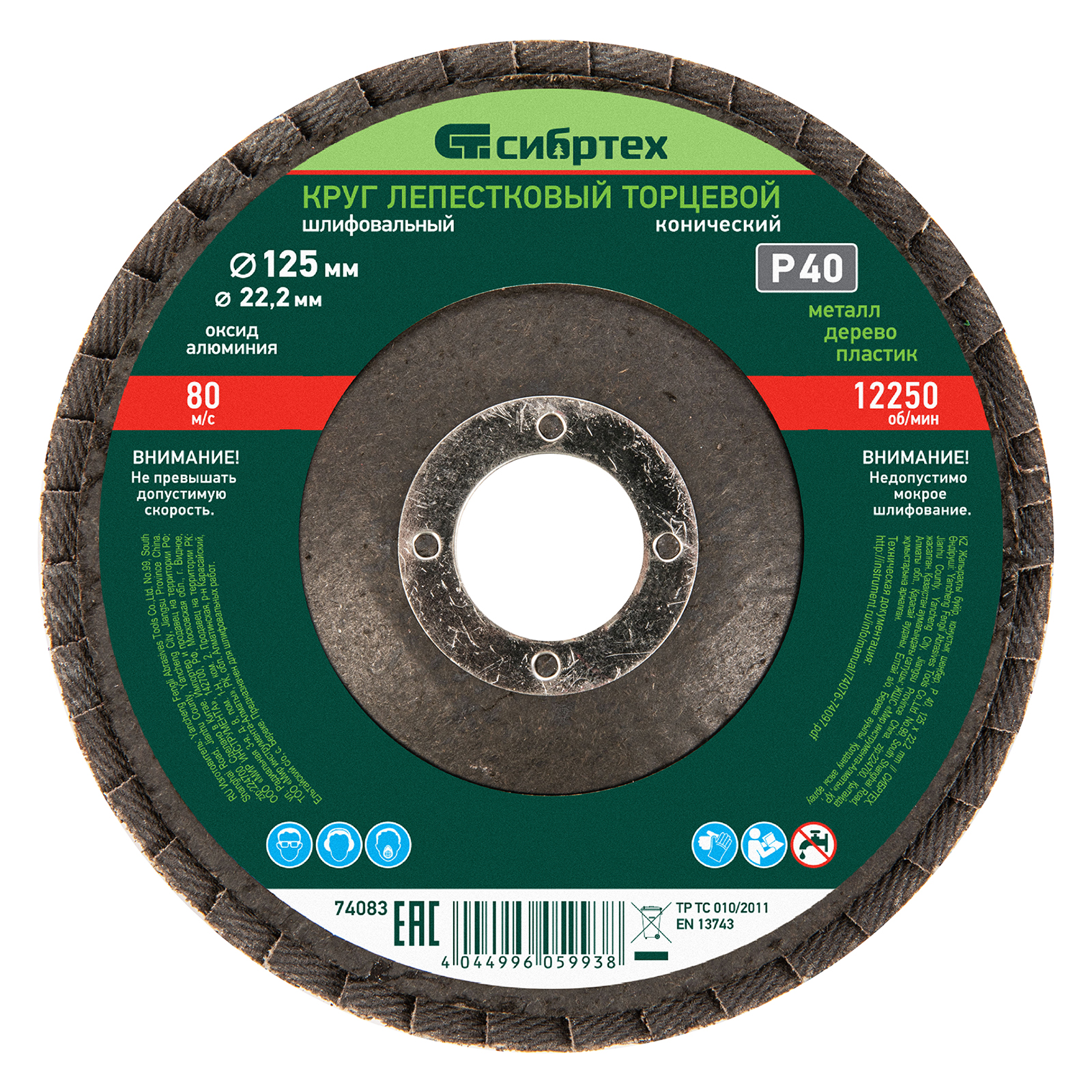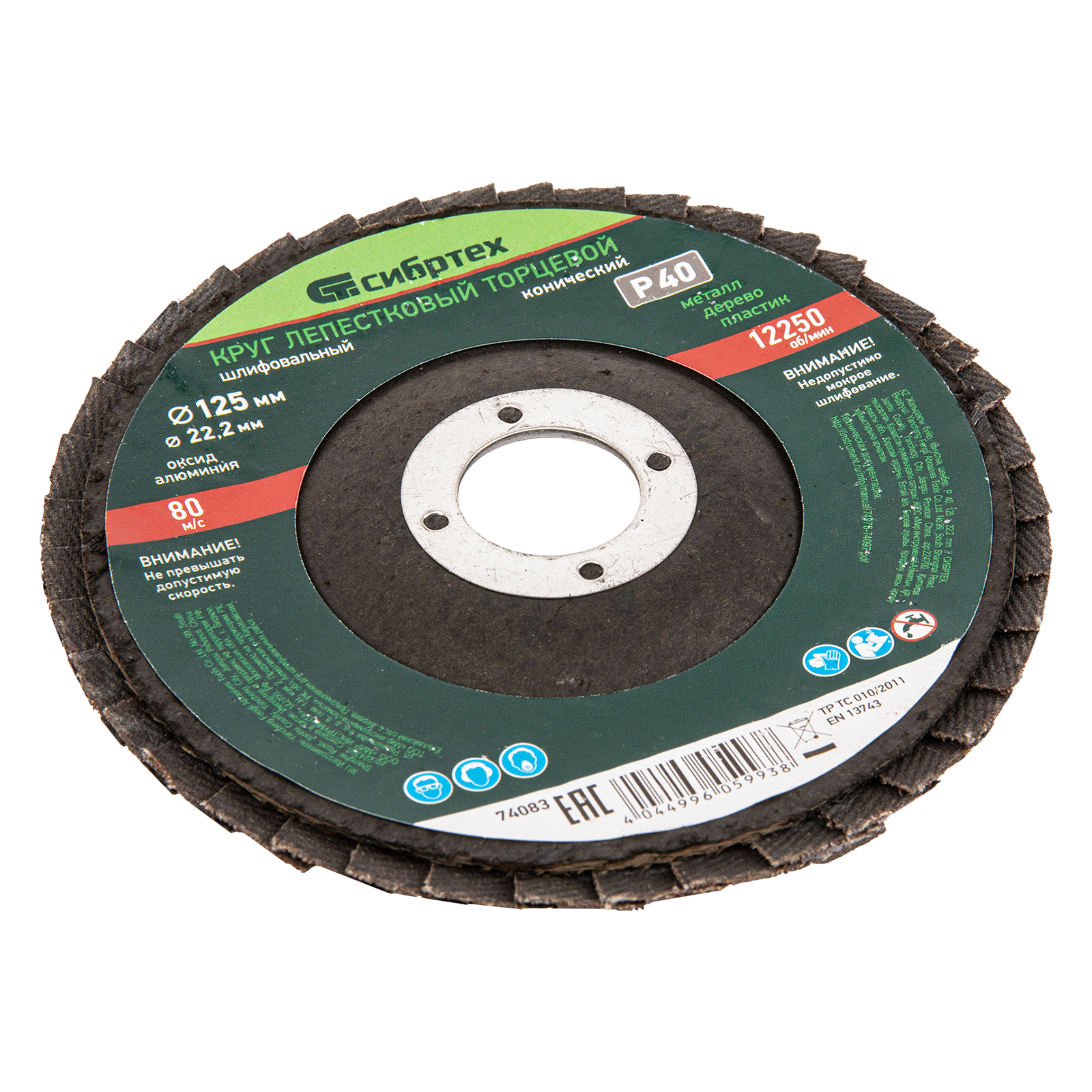 Круг лепестковый торцевой, конический, Р 40, 125 х 22.2 мм Сибртех