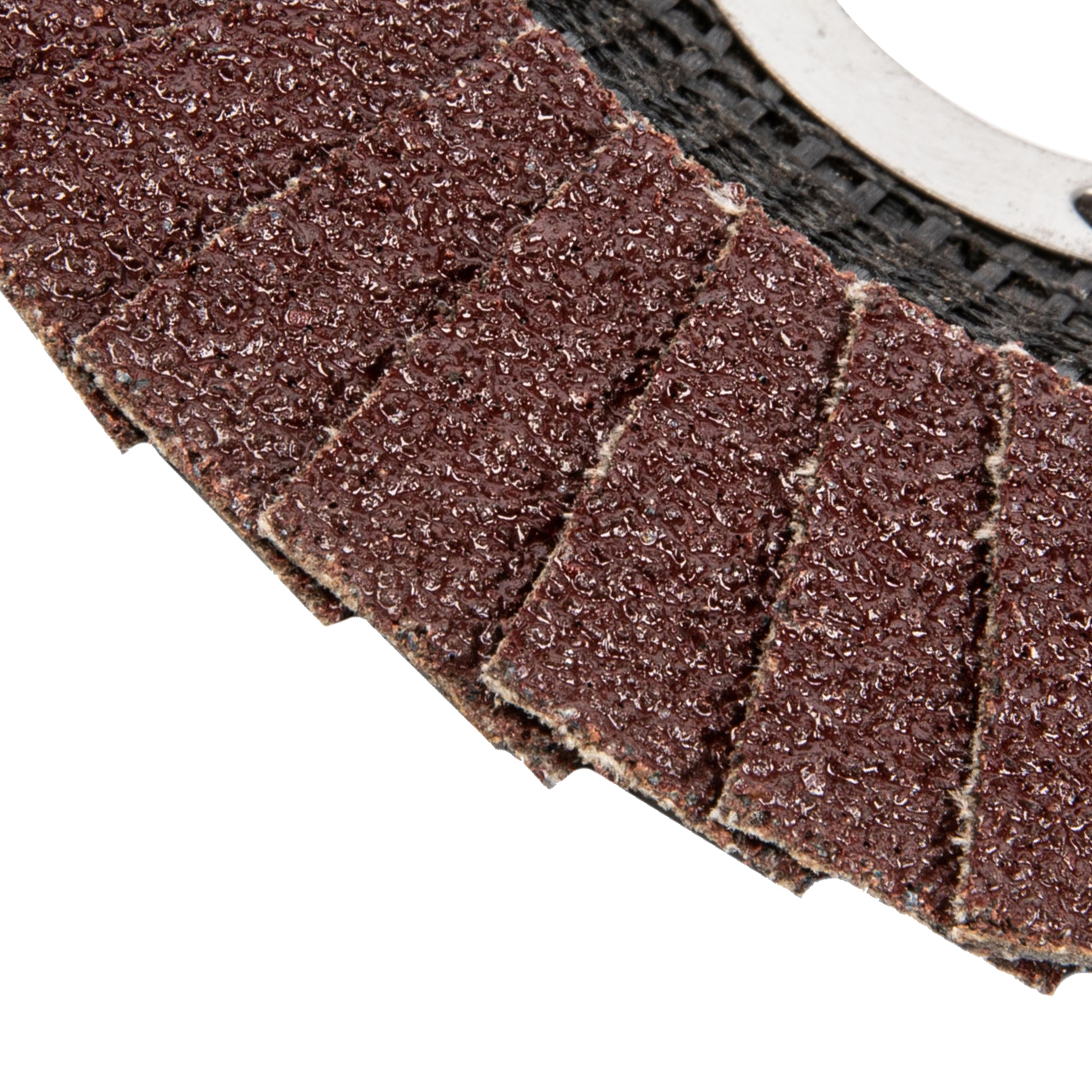 - Прочность и долговечность — основа круга выполнена из прочного стекловолокна, а лепестки с абразивом надежно крепятся к ней синтетической смолой.