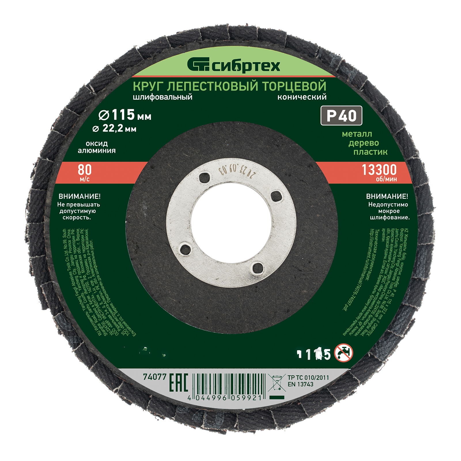 Круг лепестковый торцевой, конический, Р 40,115 х 22.2 мм Сибртех