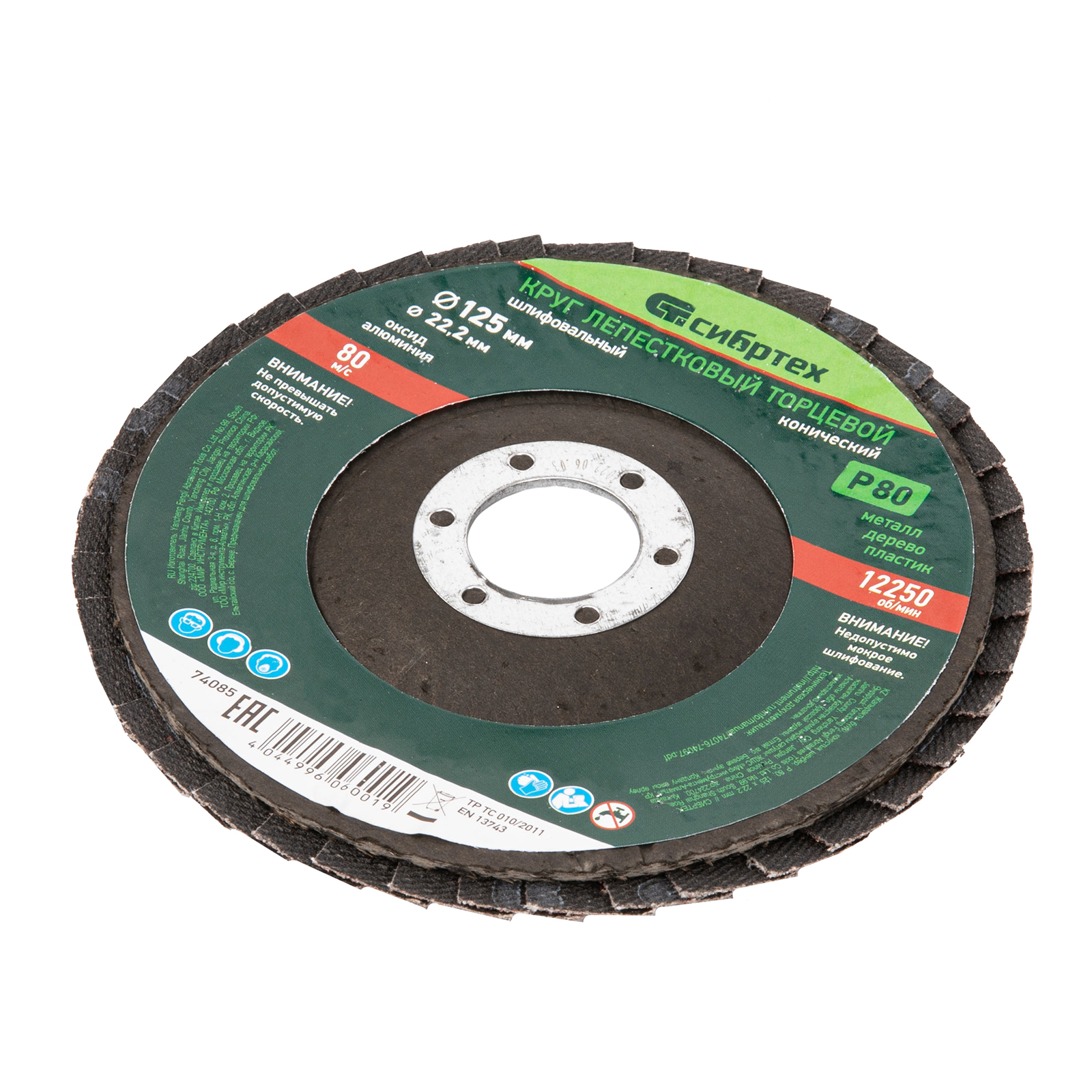Круг лепестковый торцевой, конический, Р 80, 125 х 22.2 мм Сибртех