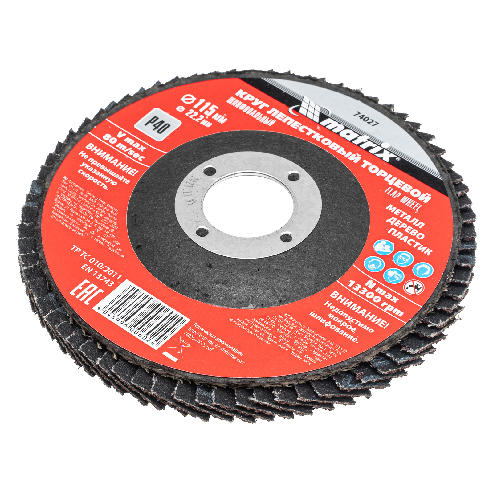 Круг лепестковый торцевой, P 40, 115 х 22.2 мм Matrix