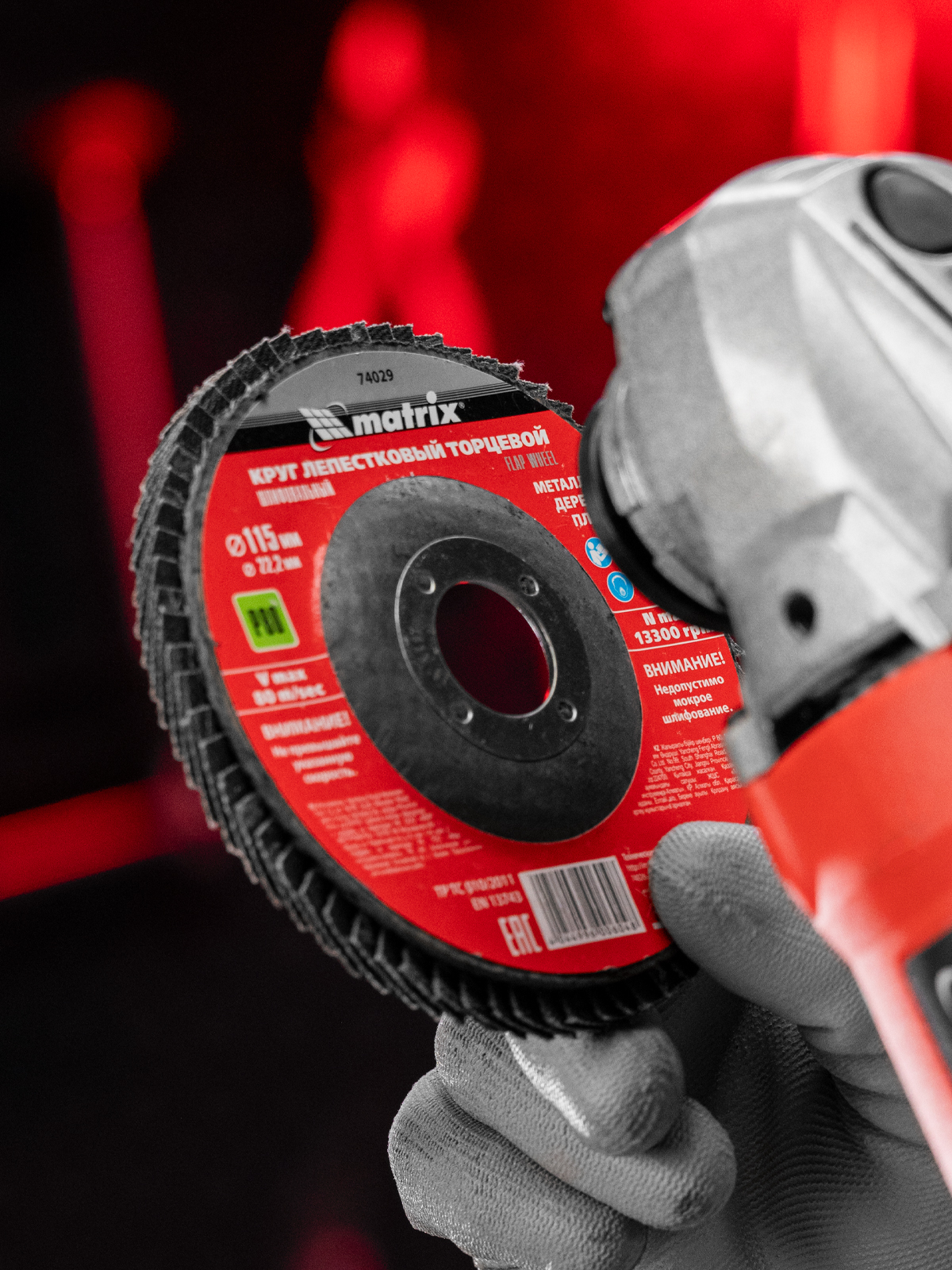 Круг лепестковый торцевой Matrix 74029 зернистостью Р80 и диаметром 115 мм за счет своей универсальности подходит для промежуточной обработки практически любых поверхностей: деревянных, металлических, пластмассовых. Устанавливается на углошлифовальную машину с посадочным диаметром 22,2 мм. Круг эффективен для подготовки поверхностей к чистовому шлифованию, удаления заусенцев, зачистки сварных швов, снятия слоя ЛКМ, ржавчины и т.д.