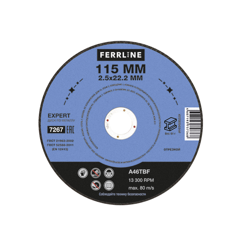 Круг отрезной по металлу FerrLine Expert 115 х 2,5 х 22,2 мм A46TBF
