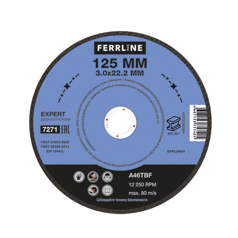Круг отрезной по металлу FerrLine Expert 125 х 3 х 22,2 мм A46TBF