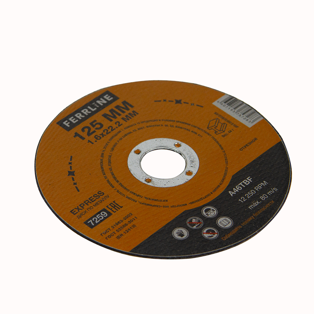 Круг отрезной по металлу FerrLine Express 125 х 1,6 х 22,2 мм A46TBF