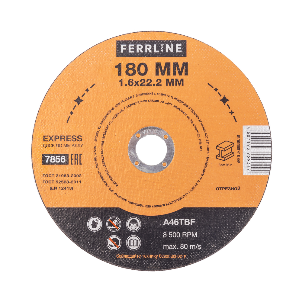 Круг отрезной по металлу Ferrline Express 180 х 1,6 х 22,2 мм A46TBF