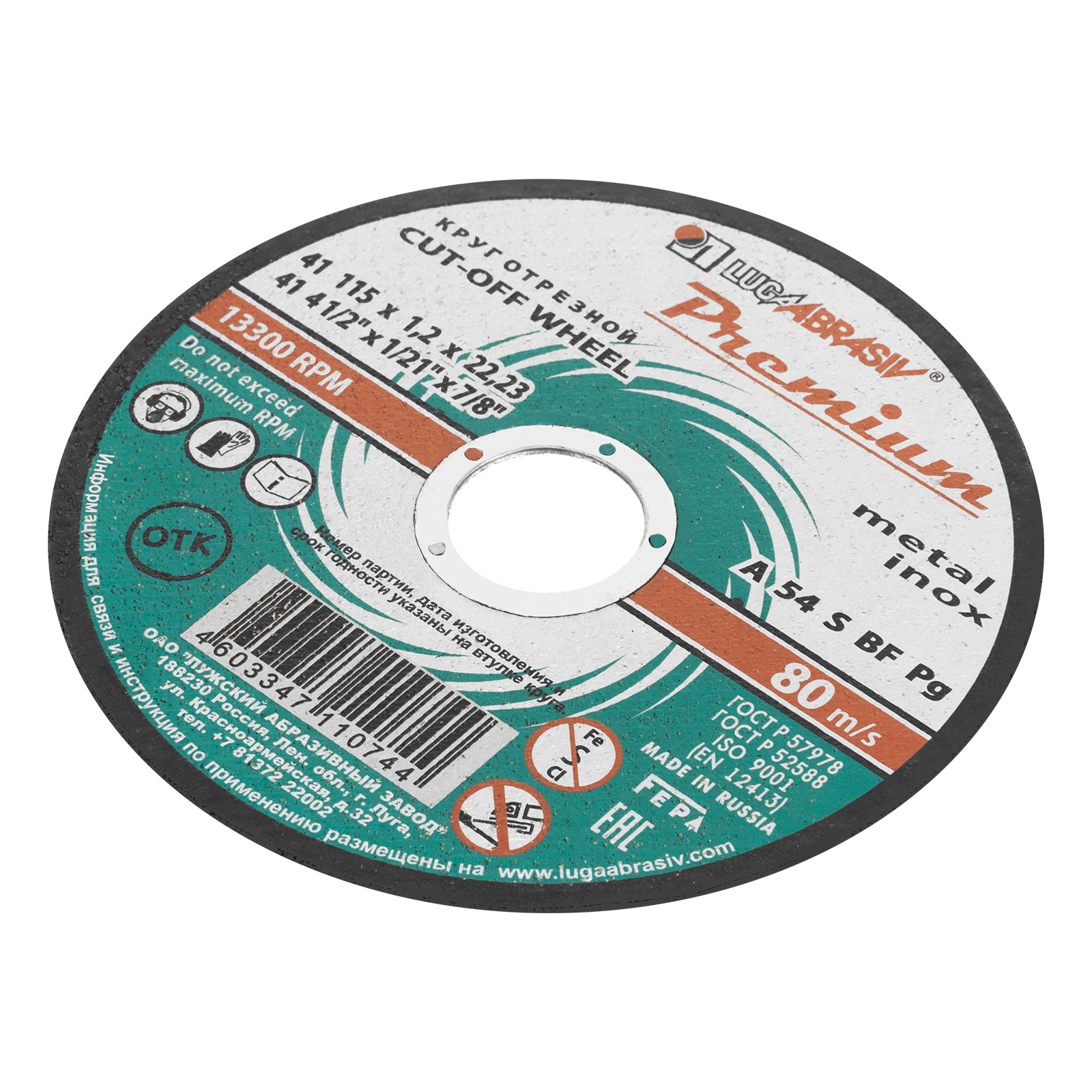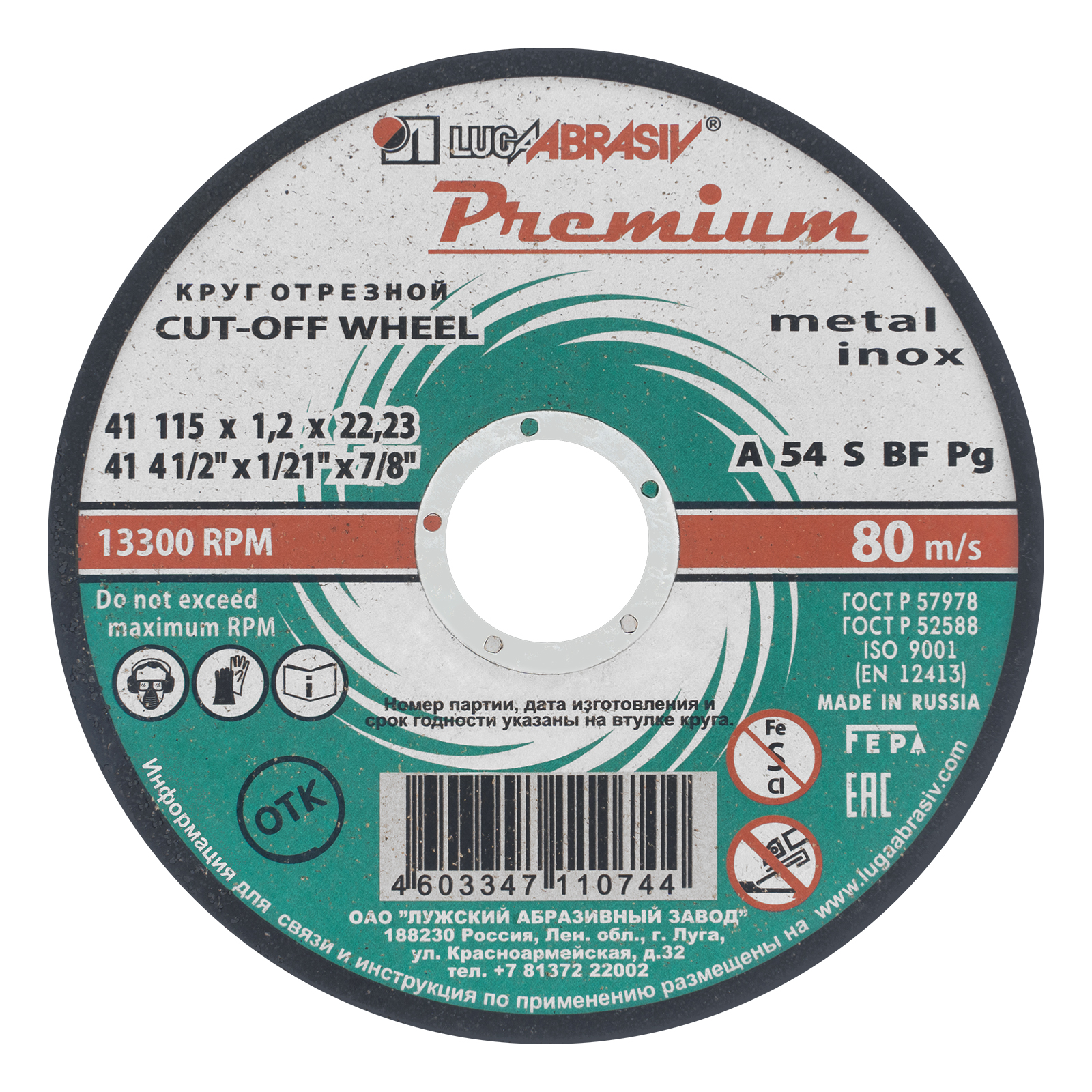 Круг отрезной по металлу и нержавеющей стали, 115 х 1.2 х 22 мм, Премиум "Луга"