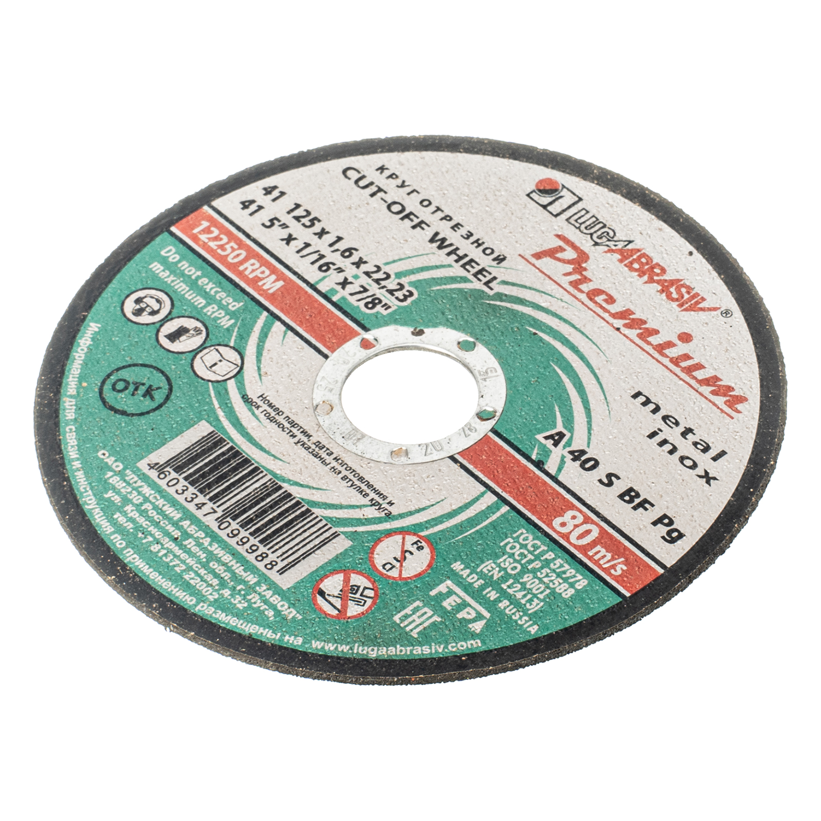 Круг отрезной по металлу и нержавеющей стали, 125 х 1.6 х 22 мм, Премиум "Луга"