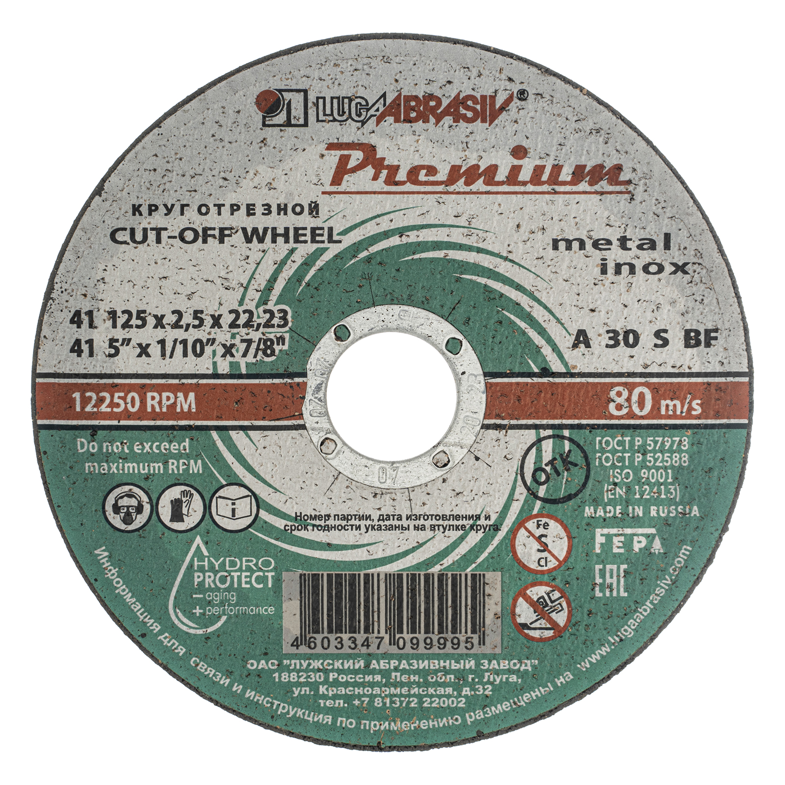 Круг отрезной по металлу и нержавеющей стали, 125 х 2.5 х 22 мм, Премиум "Луга"