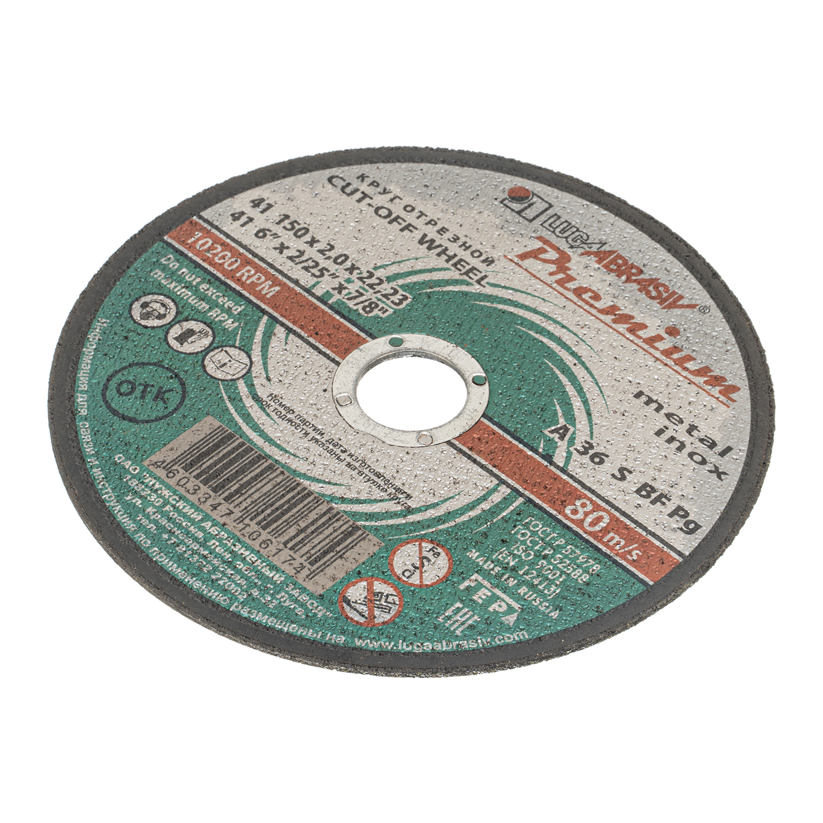 Круг отрезной по металлу и нержавеющей стали, 150 х 2.0 х 22 мм, Премиум "Луга"