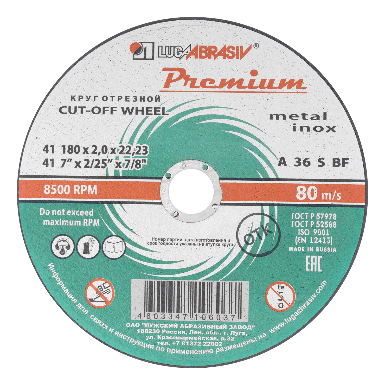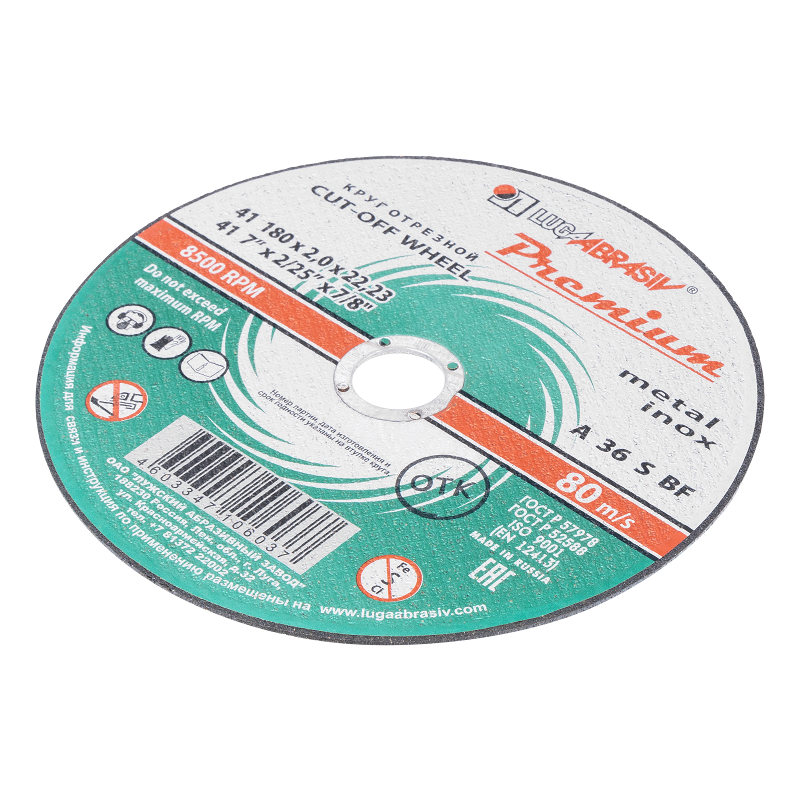 Круг отрезной по металлу и нержавеющей стали, 180 х 2.0 х 22 мм, Премиум "Луга"
