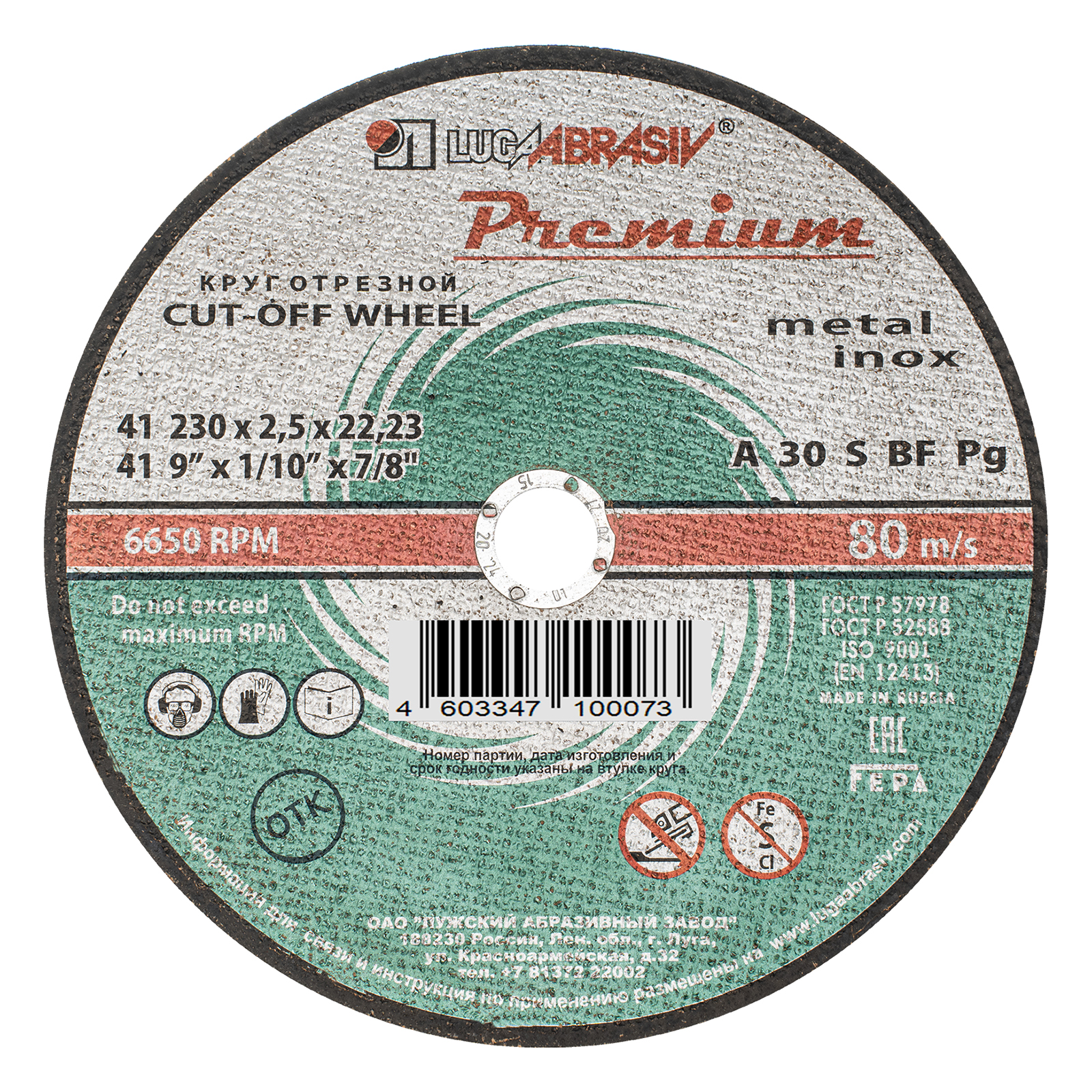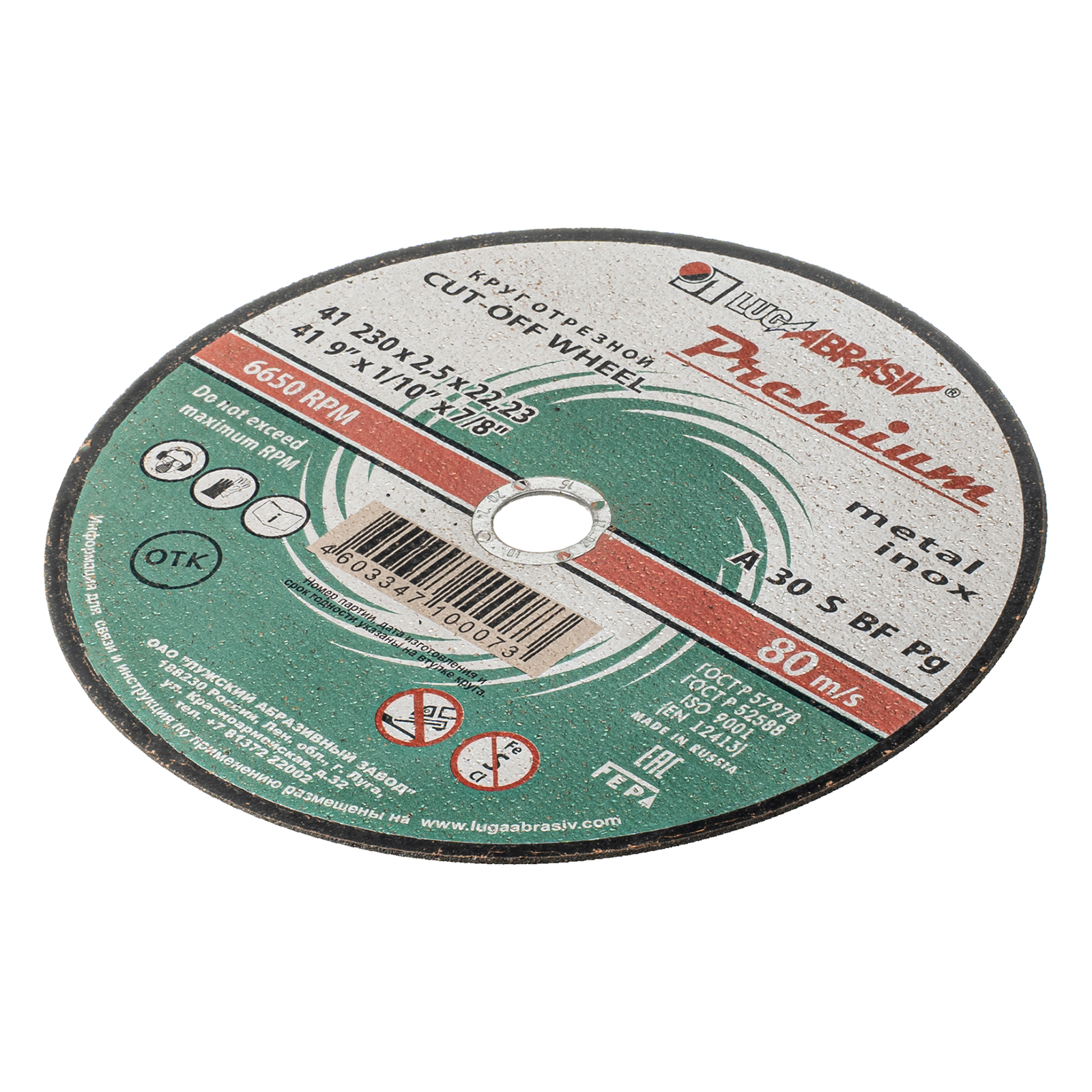 Круг отрезной по металлу и нержавеющей стали, 230 х 2.5 х 22 мм, Премиум "Луга"