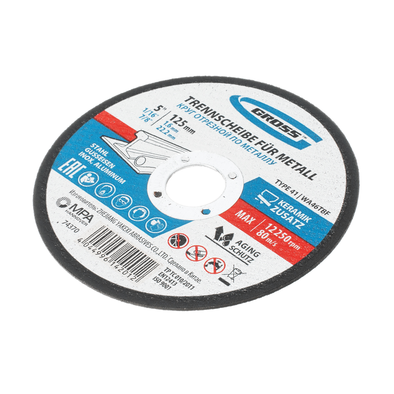Круг отрезной по металлу, 125 х 1.6 х 22 мм Gross