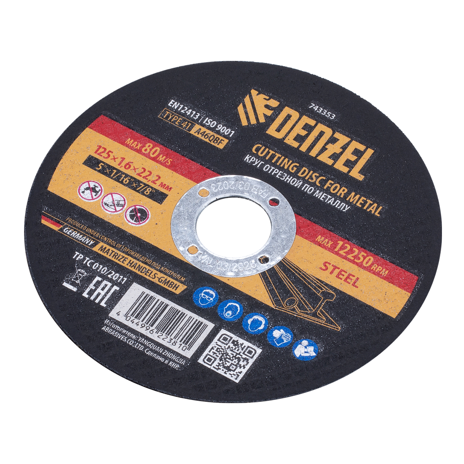 Круг отрезной по металлу, 125 х 1,6 х 22,2 мм, A46QBF Denzel