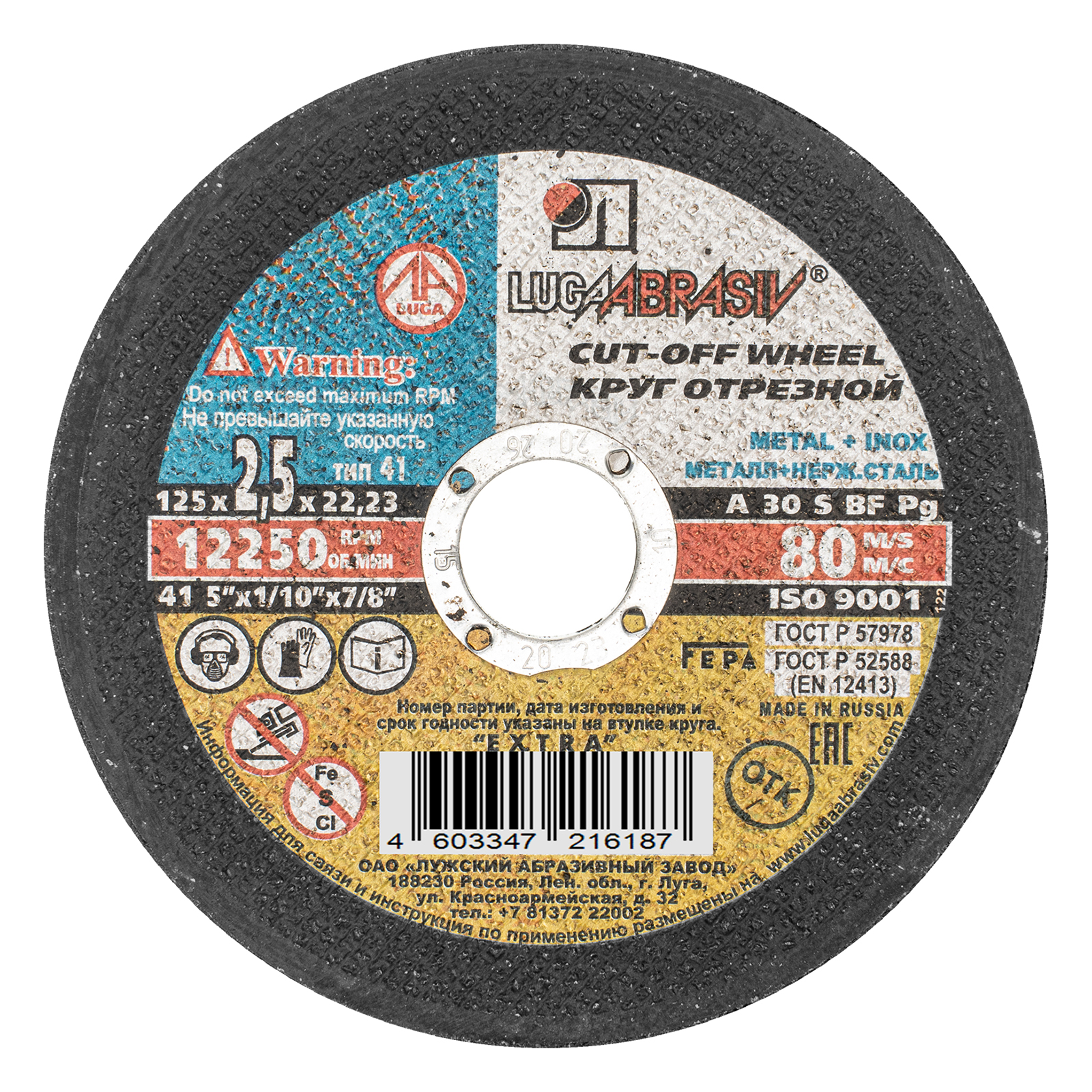 Круг отрезной по металлу, 125 х 2.5 х 22 мм "Луга"