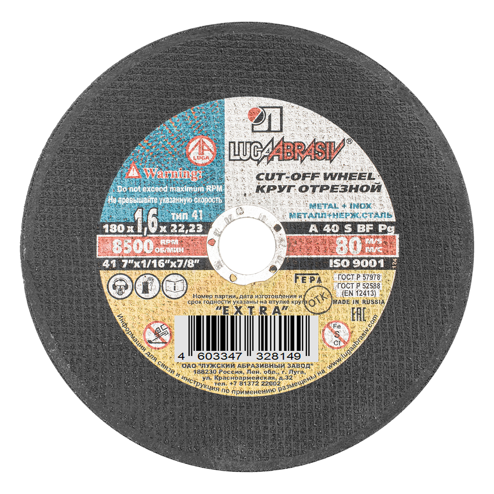 Круг отрезной по металлу, 180 х 1.6 х 22 мм "Луга"