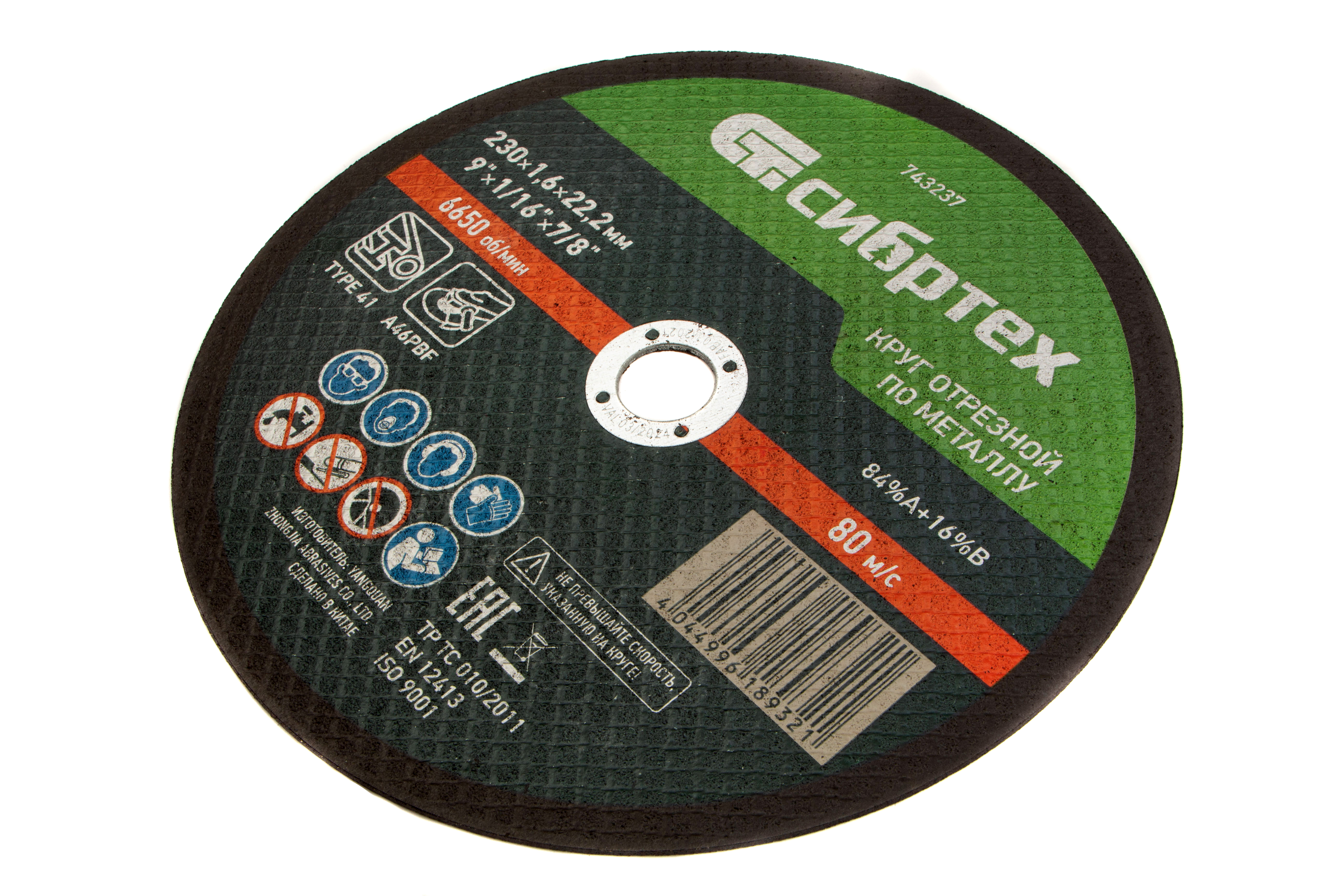 Отрезной круг по металлу Сибртех 84%A+16%B 743237 размером 230 х 1,6 мм устанавливается на фланец ручной углошлифовальной машины с посадочным размером 22,2 мм. Предназначен для резки углеродистых сталей. Круг пригодится частному мастеру для проведения ремонтных работ дома или в гараже.