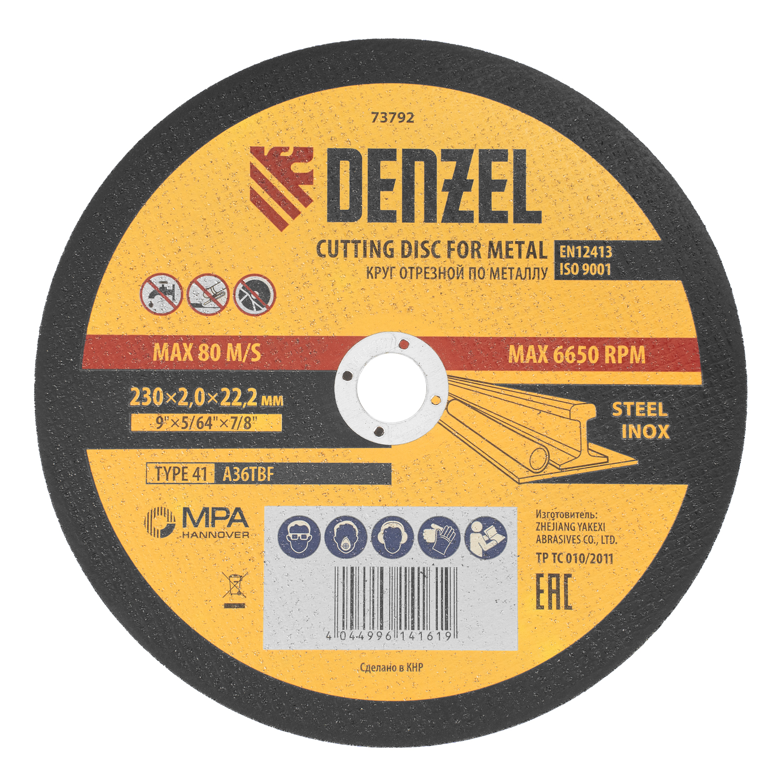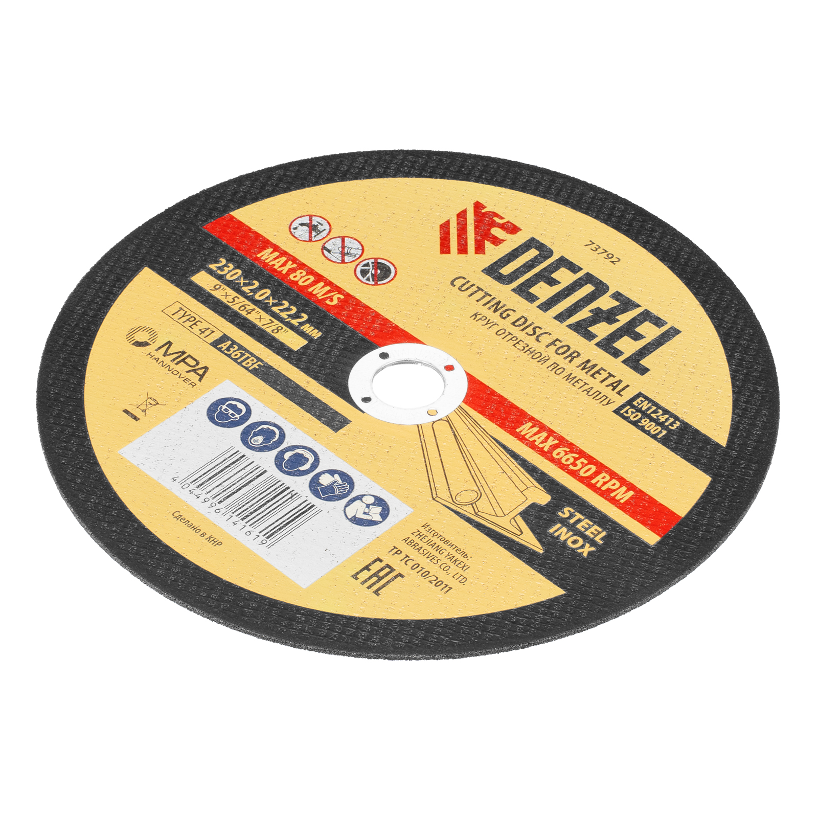 Круг отрезной по металлу, 230 х 2 х 22.2 мм Denzel