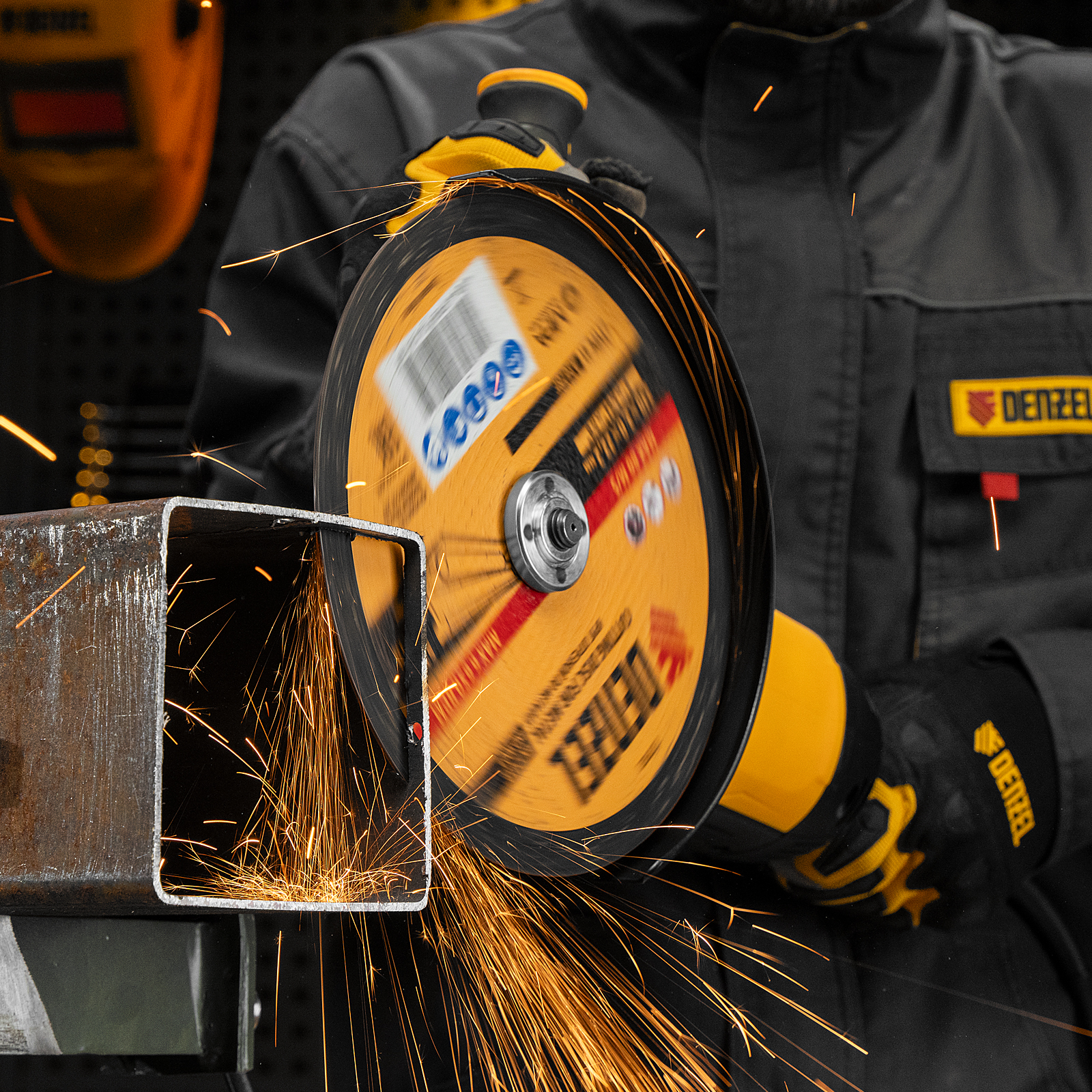 - Высокий ресурс — благодаря толщине 2 мм и средней по плотности структуре круг стабильно режет сталь даже при больших объемах работ.