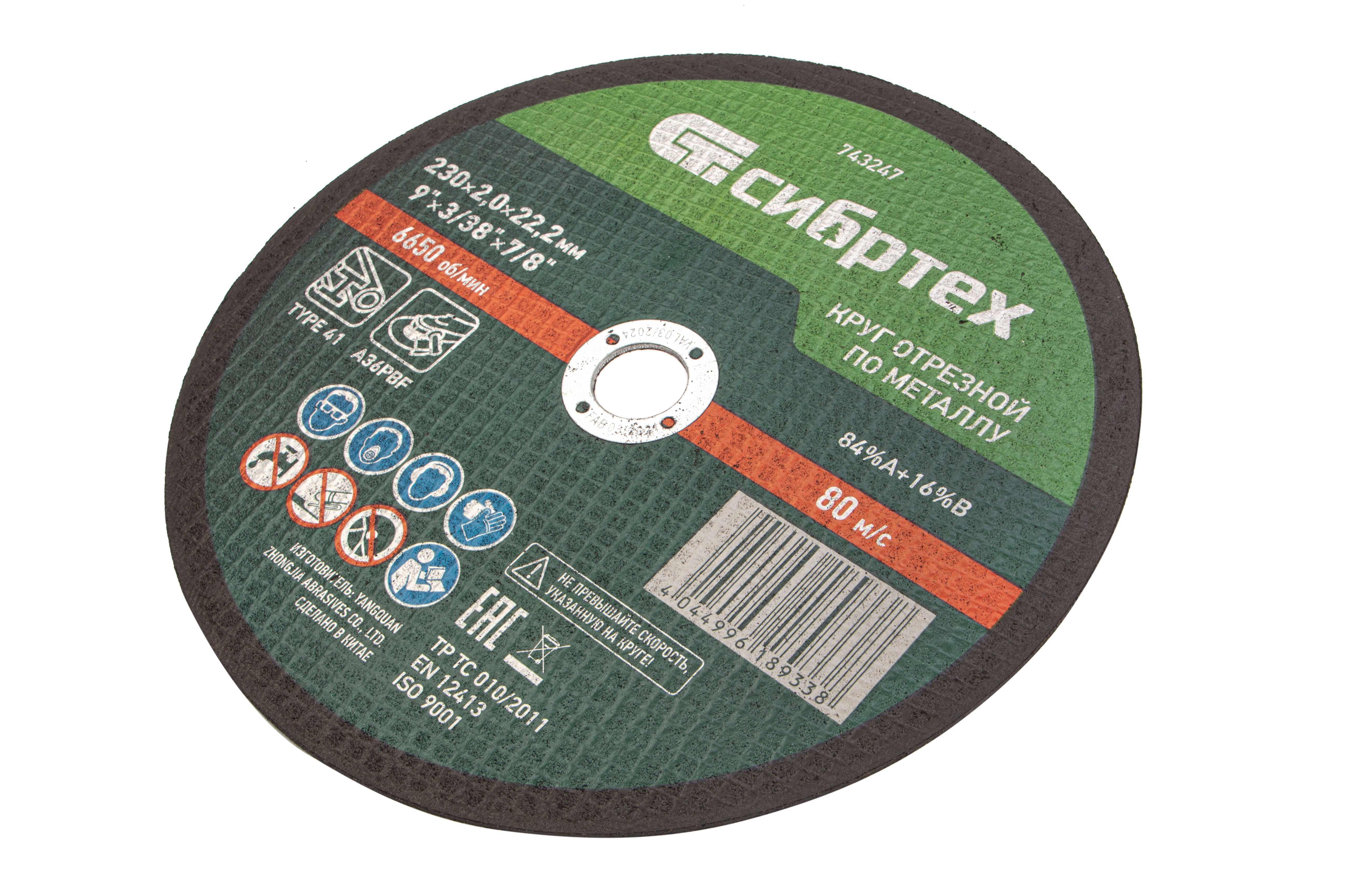 Отрезной круг по металлу Сибртех 84%A+16%B 743247 размером 230 х 2,0 мм устанавливается на фланец ручной углошлифовальной машины с посадочным размером 22,2 мм. Предназначен для резки углеродистых сталей. Круг пригодится частному мастеру для проведения ремонтных работ дома или в гараже.