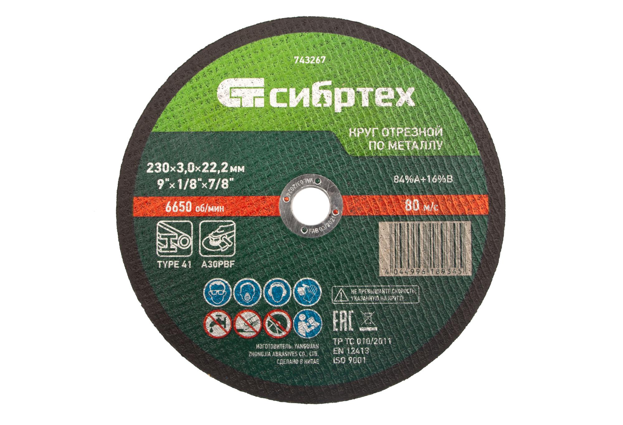 Отрезной круг по металлу Сибртех 84%A+16%B 743267 размером 230 х 3,0 мм устанавливается на фланец ручной углошлифовальной машины с посадочным размером 22,2 мм. Предназначен для резки углеродистых сталей. Круг пригодится частному мастеру для проведения ремонтных работ дома или в гараже.