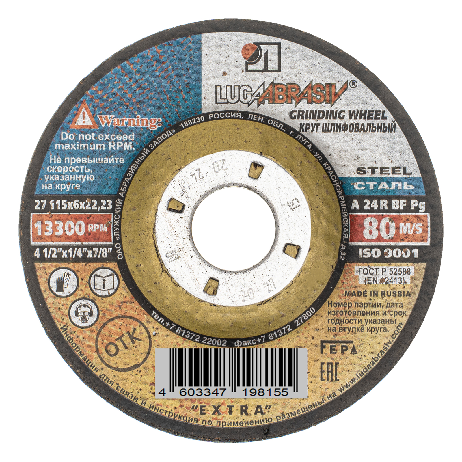 Круг шлифовальный по металлу, 115 х 6 х 22.2 мм, "Луга"
