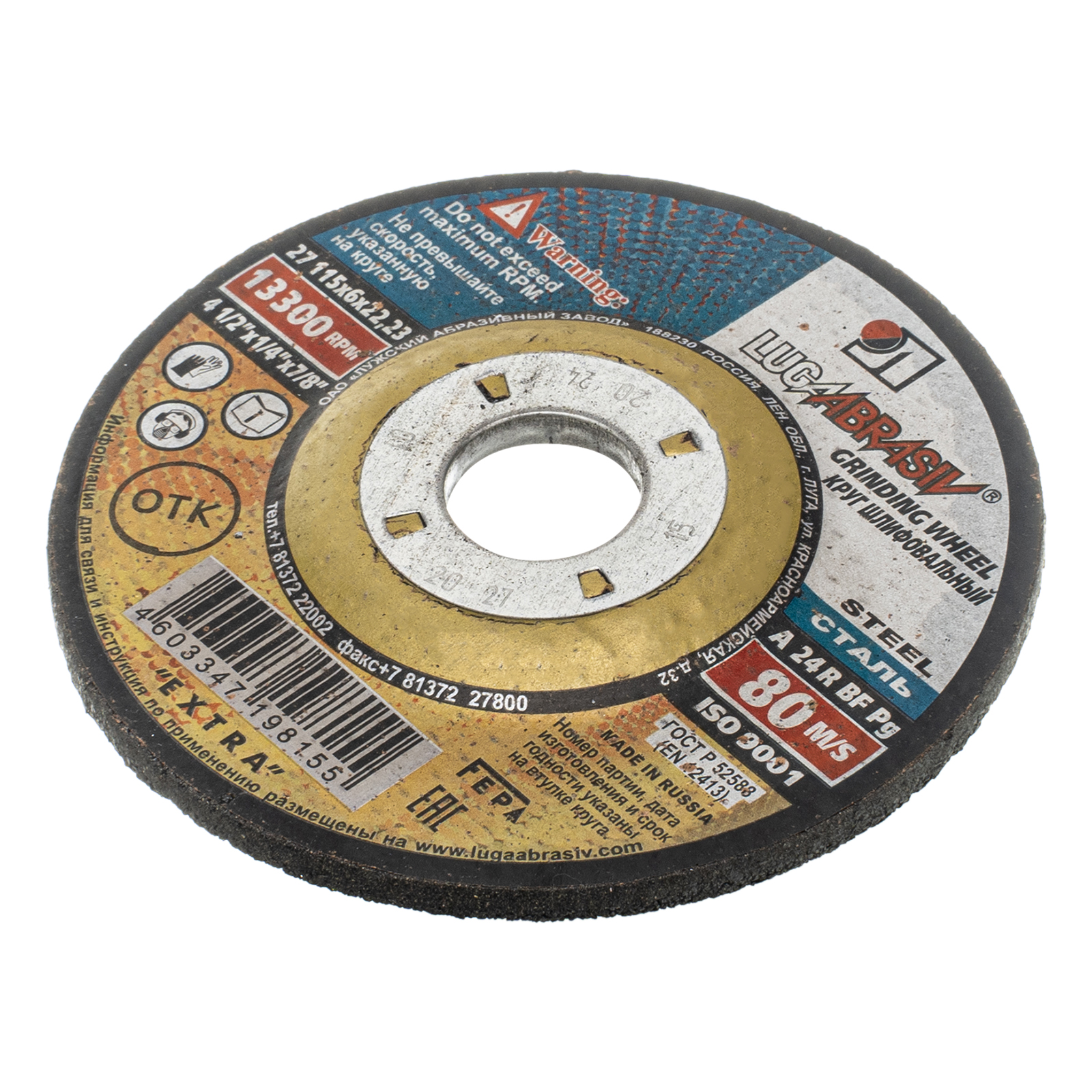 Шлифовальный круг по металлу Луга 73405 размером 115 х 6,0 х 22,2 мм предназначен для установки на фланец углошлифовальной машины (УШМ), совместимой с оснасткой соответствующего диаметра. Используется для сухой обработки металлических поверхностей. Абразив с зернистостью F24 удаляет ржавчину, заусенцы, окалину, применяется для зачистки сварных швов. Профиль круга с утопленным центром оптимален для проведения зачистных работ с использованием УШМ.