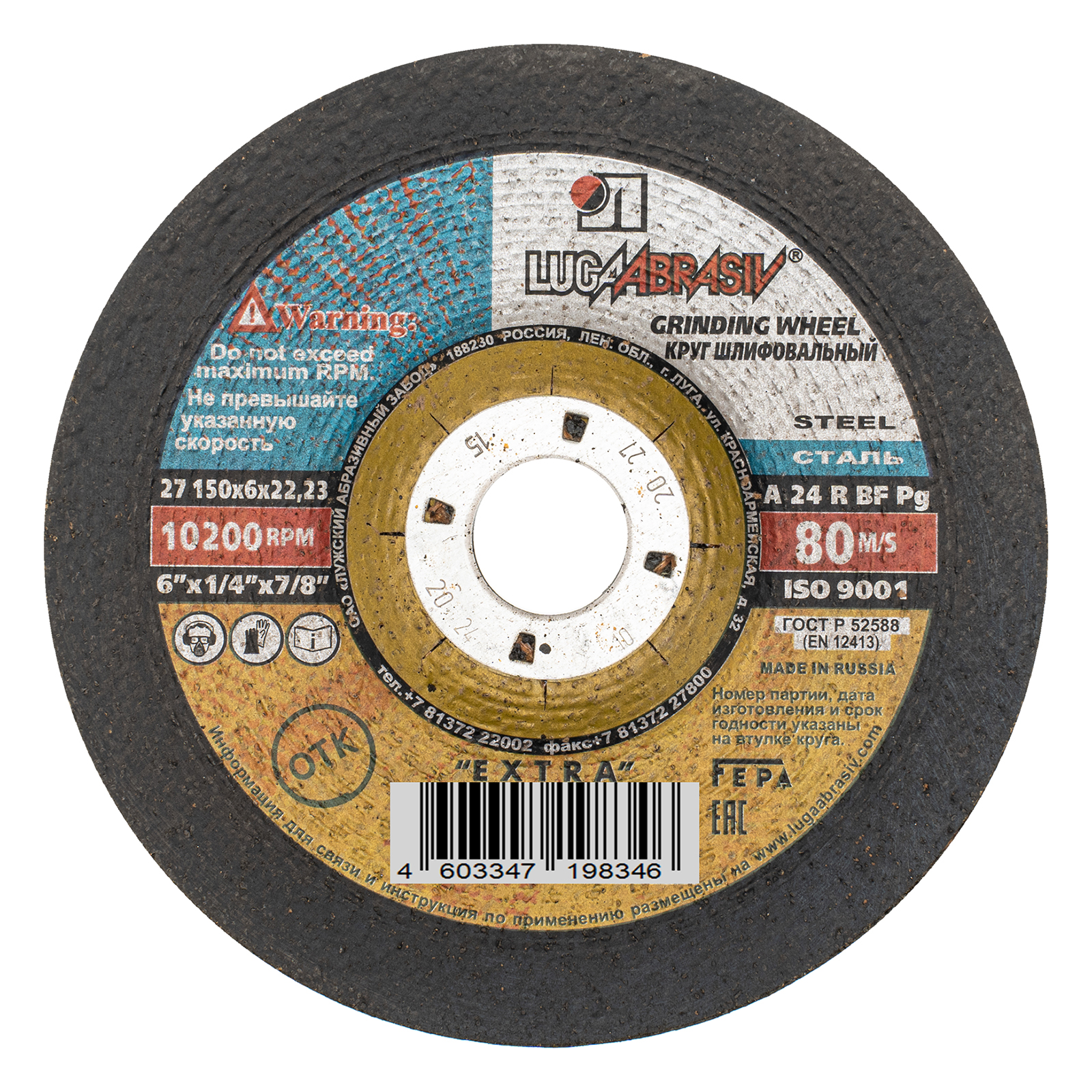 Круг шлифовальный по металлу, 150 х 6 х 22.2 мм, "Луга"