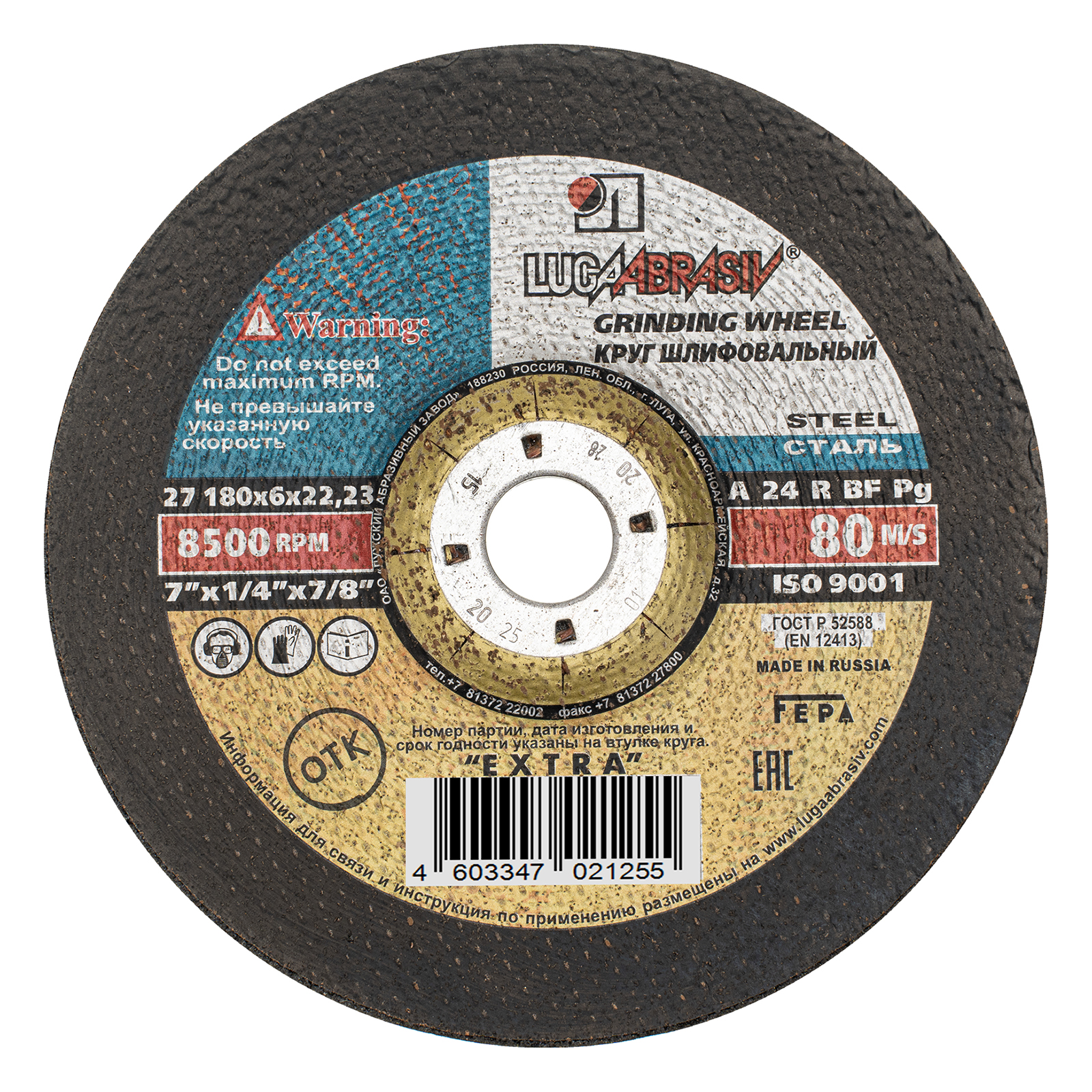 Круг шлифовальный по металлу, 180 х 6 х 22.2 мм, "Луга"