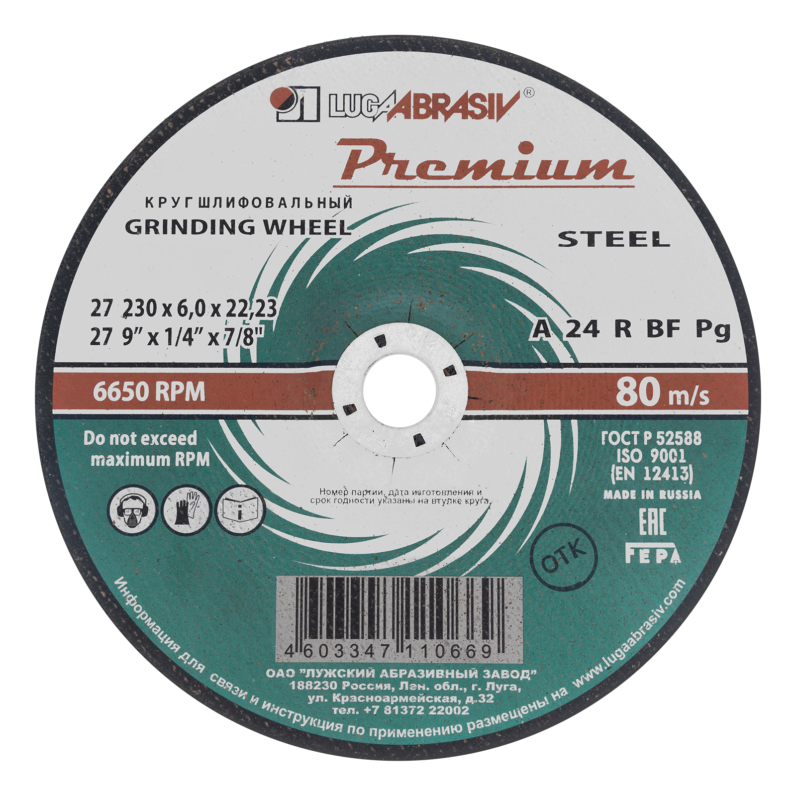 Круг зачистной по металлу, 230 х 6 х 22 мм, Премиум "Луга" Россия |