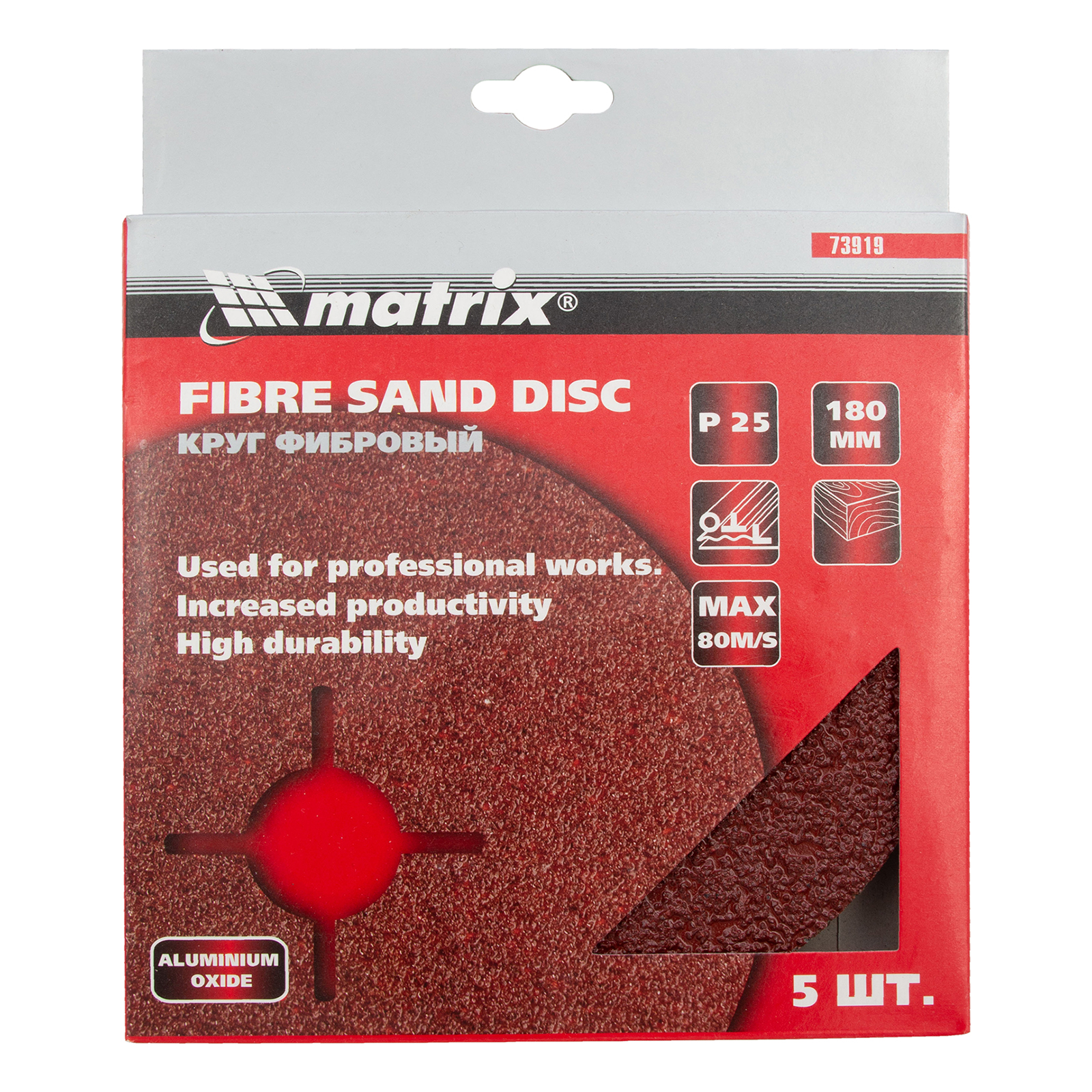 Круги фибровые 5 шт, Р 24, 180 х 22 mm Matrix