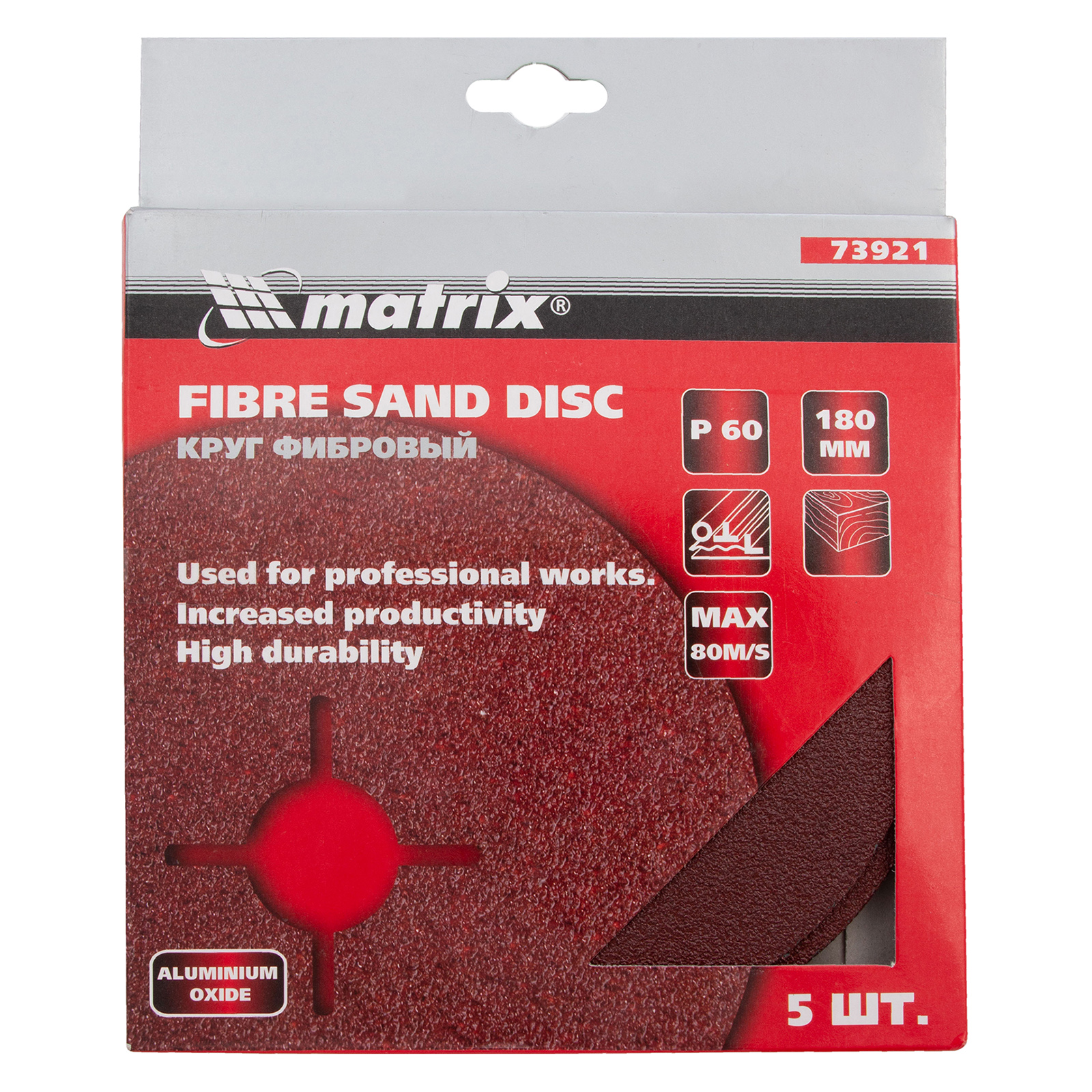 Круги фибровые 5 шт, Р 60, 180 х 22 mm Matrix