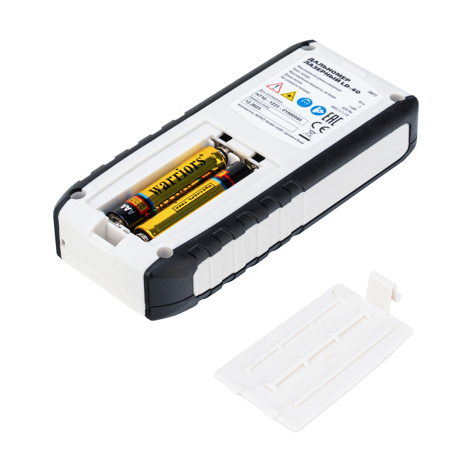 - Высокий ресурс — дальномер питается от двух батареек ААА, которых хватает на 1000 замеров.